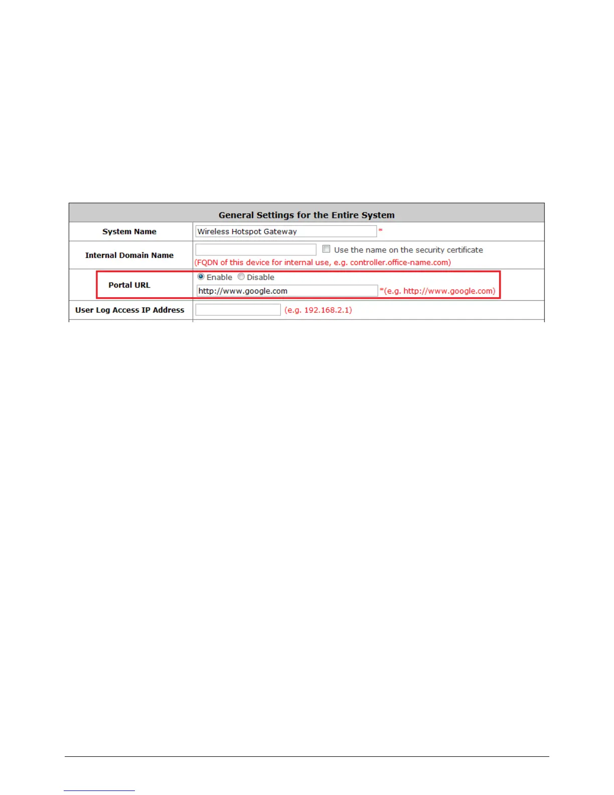 When this function is enabled, enter the URL of a Web server as the Portal page. Once logged in