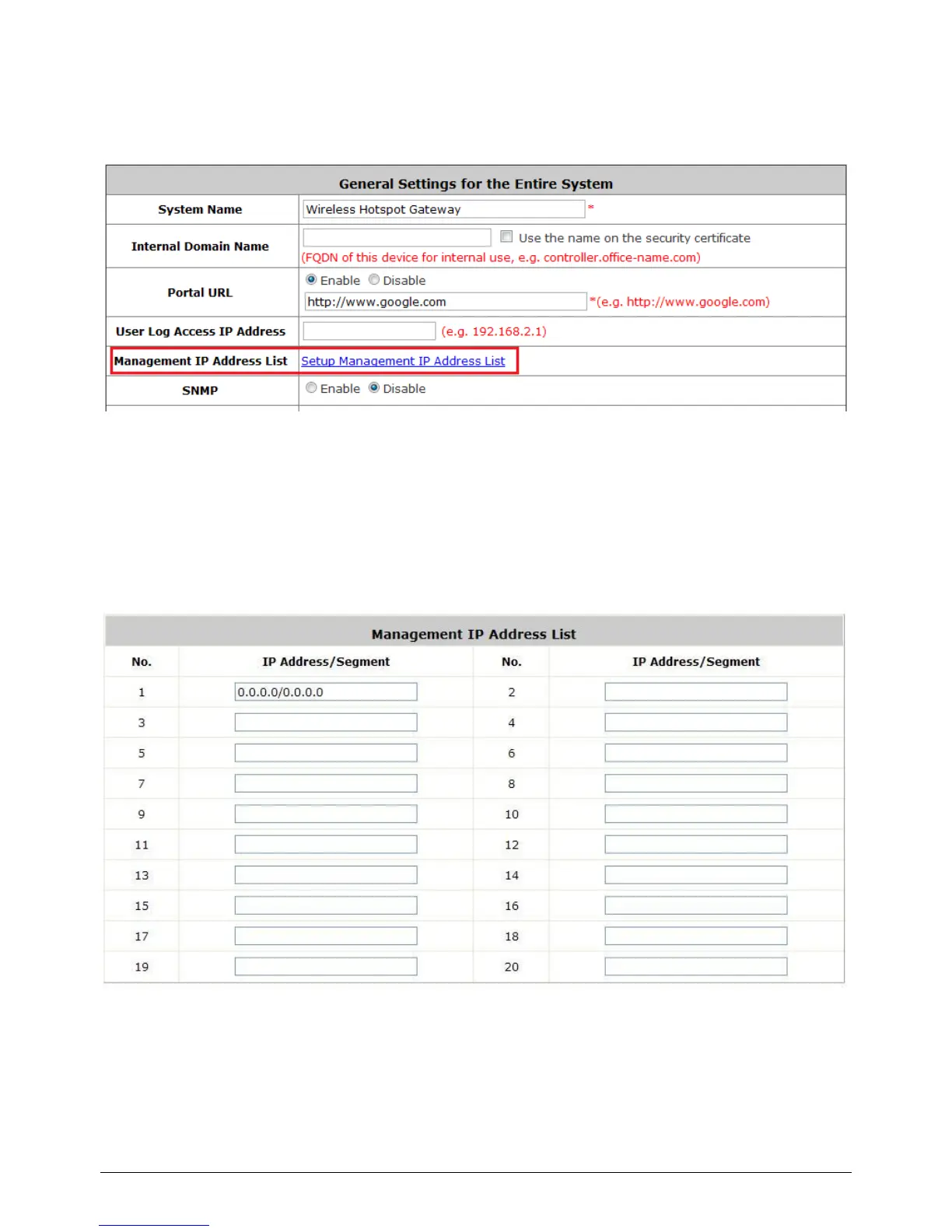 Only PCs within the Management IP range on the list are allowed to access the system's web