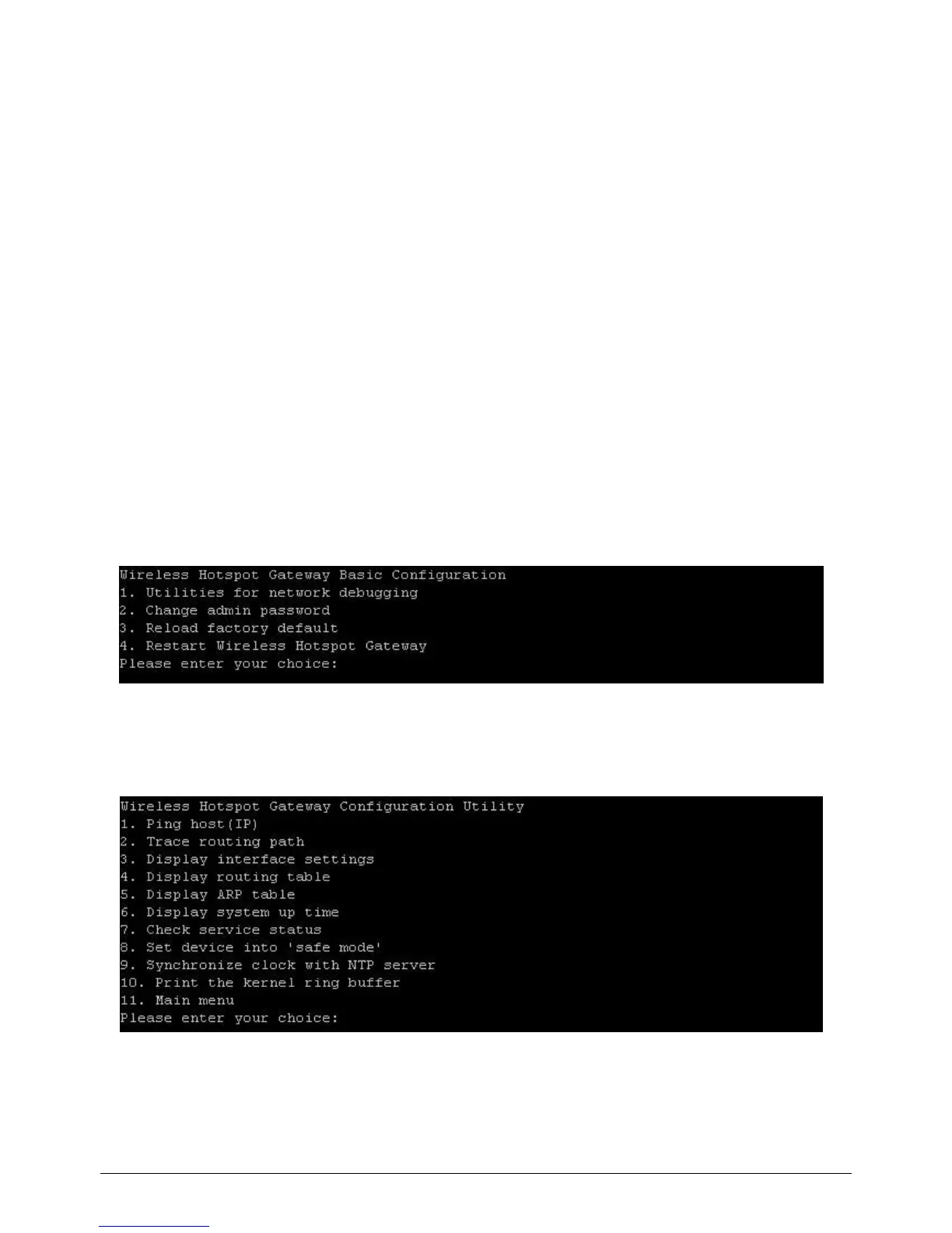 3. Once the console port of WHG-1000 is connected properly, the console main screen will appear