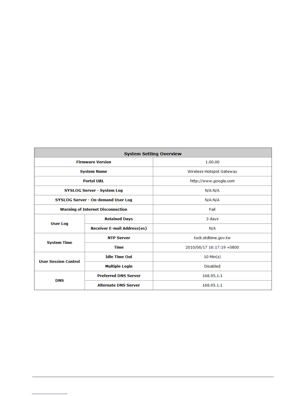 This section includes System, Interface, Routing Table, Online Users, User Log and E-mail &