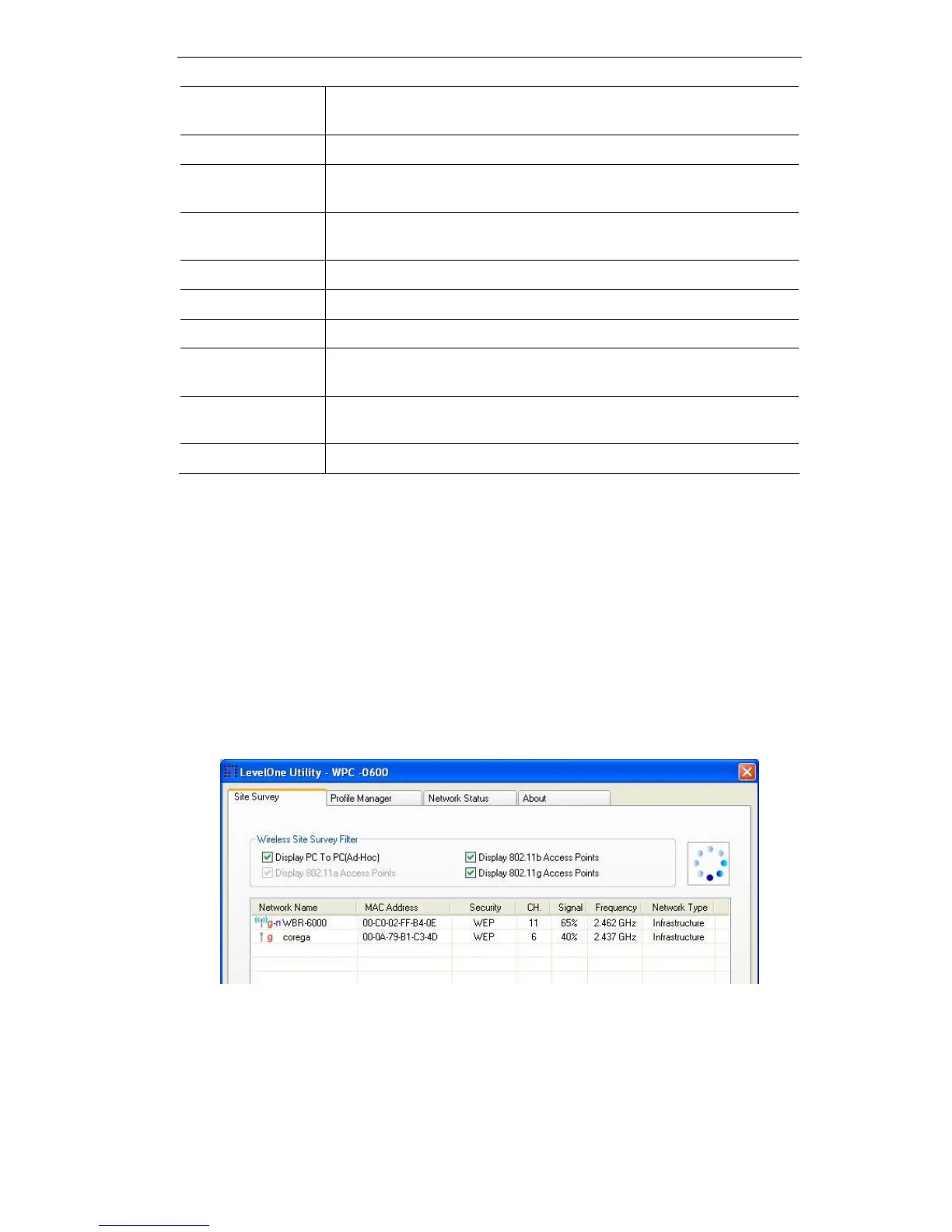 Note that once you are connected to a Wireless network, the Site Survey screen will