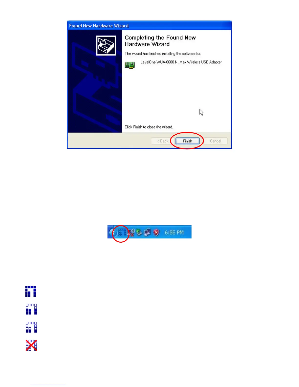 When the Wireless LAN utility is installed properly, you will see the icon on the Windows task bar.