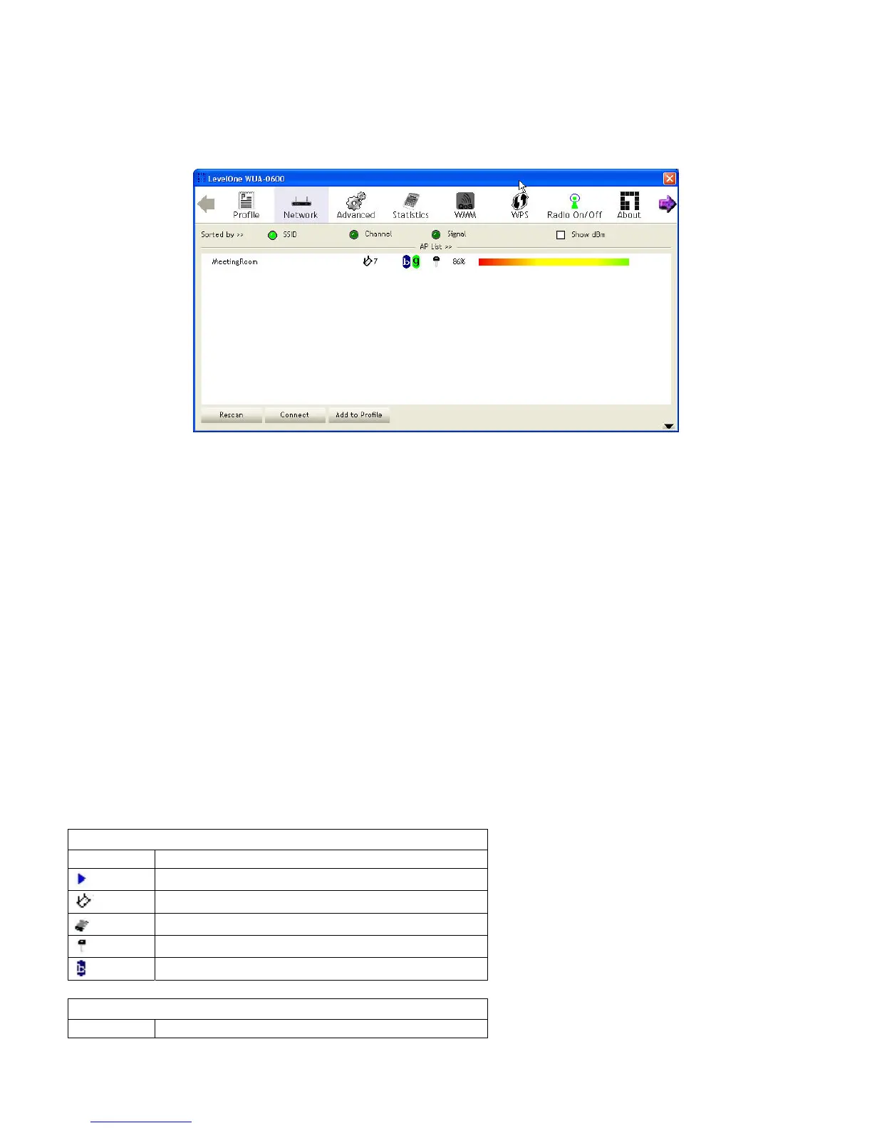 Sort by: Indicate that the AP list is sorted by SSID, Channel or Signal.