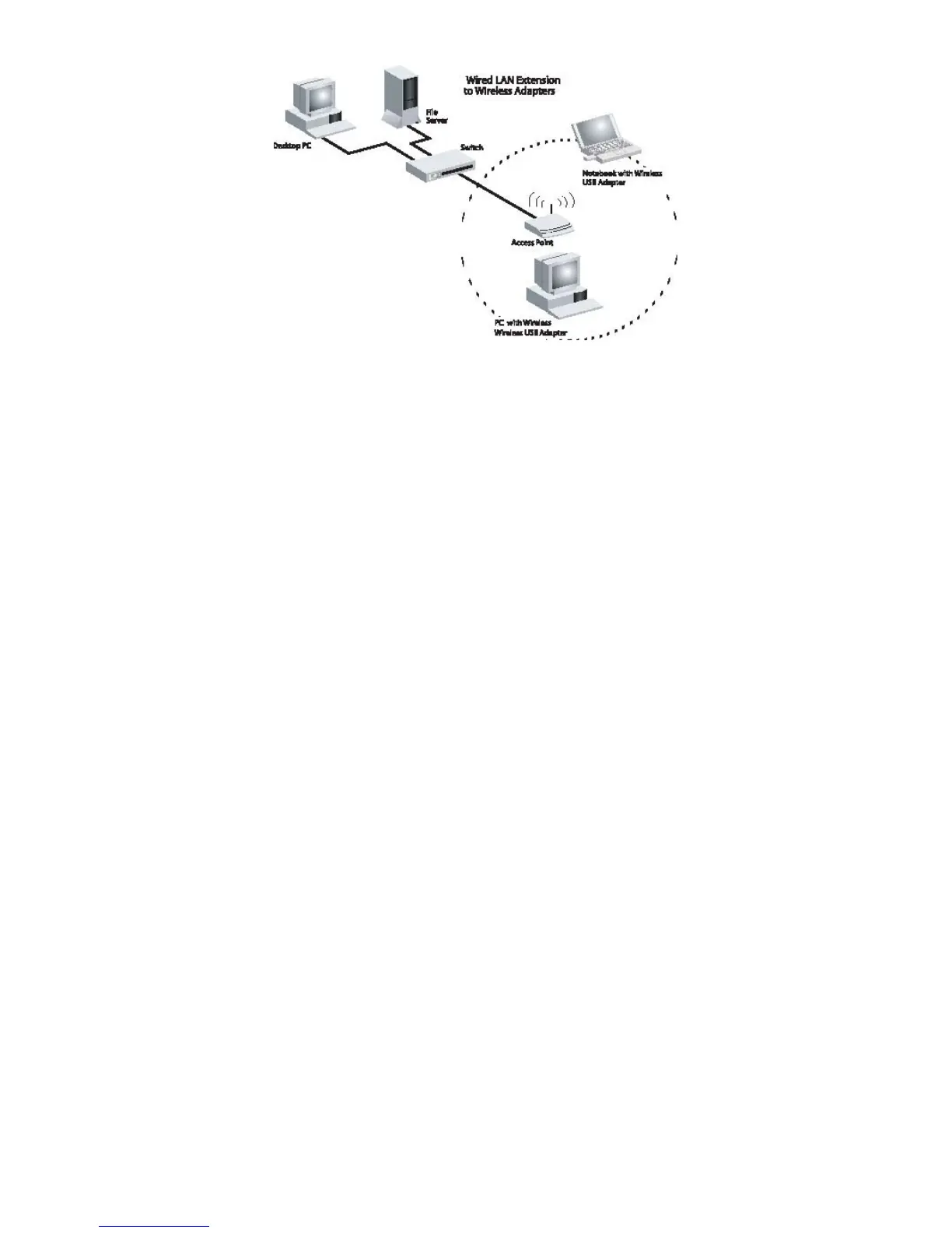 The infrastructure configuration not only extends the accessibility of wireless PCs to the wired LAN,