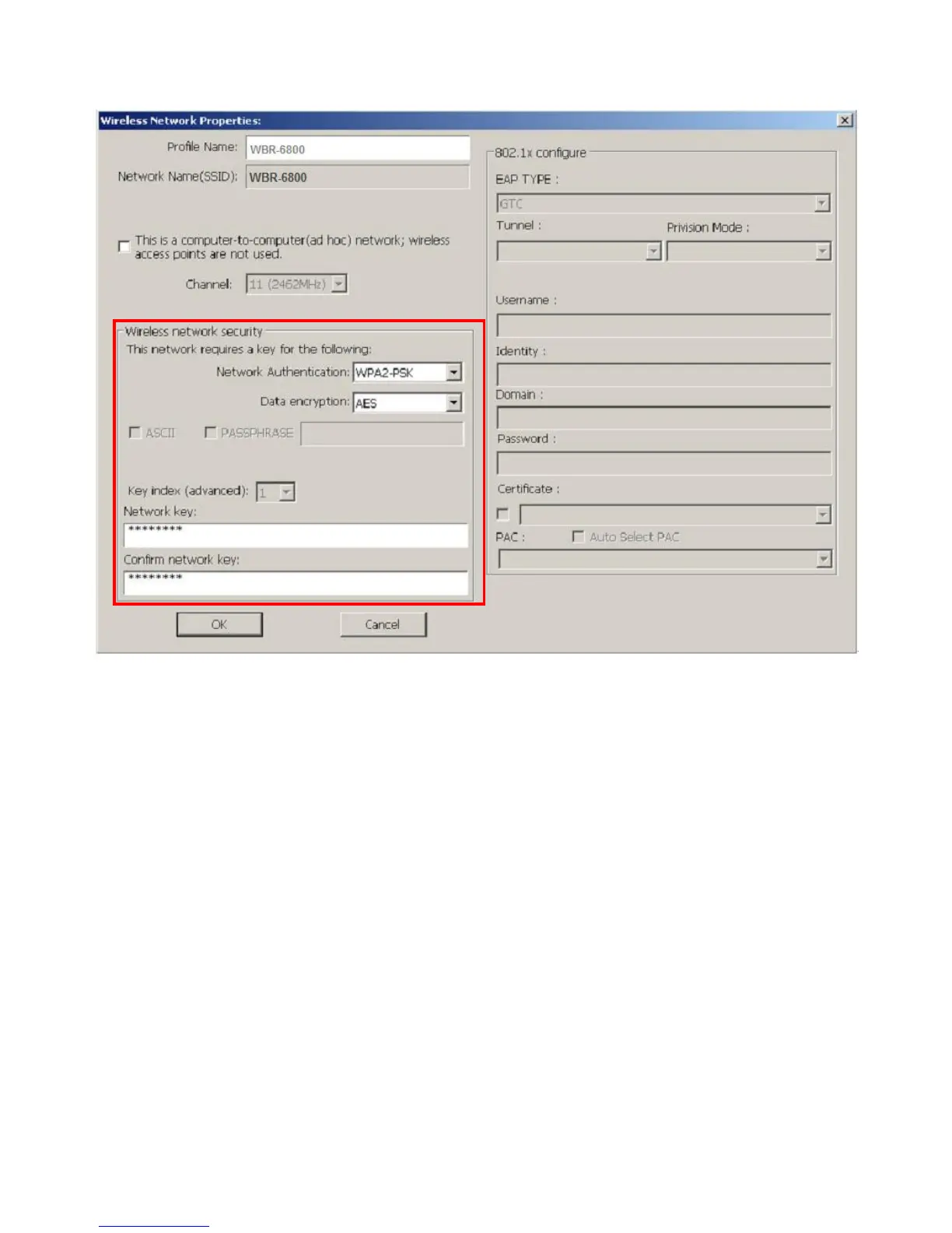 Note: Use of WEP or WPA (TKIP) will force the wireless connection to connect at legacy 802.11g