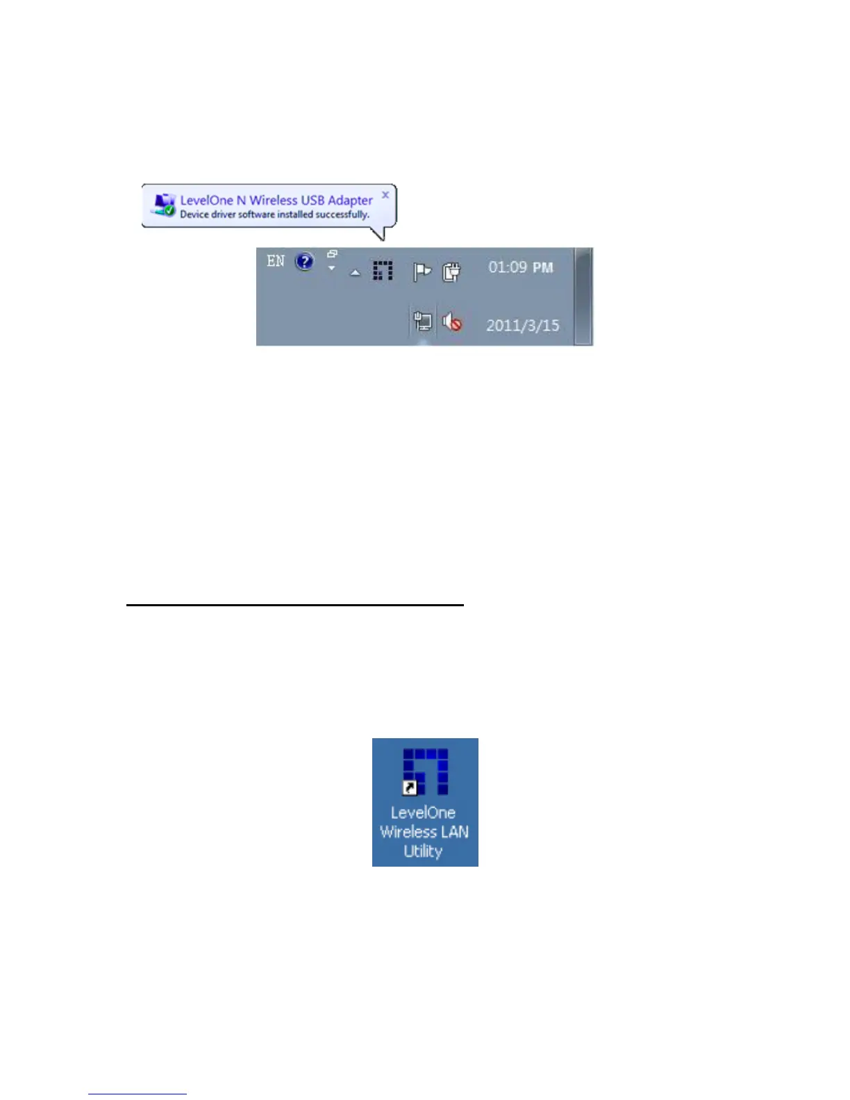 9. Double click the LevelOne Wireless LAN Utility on your Windows desktop.