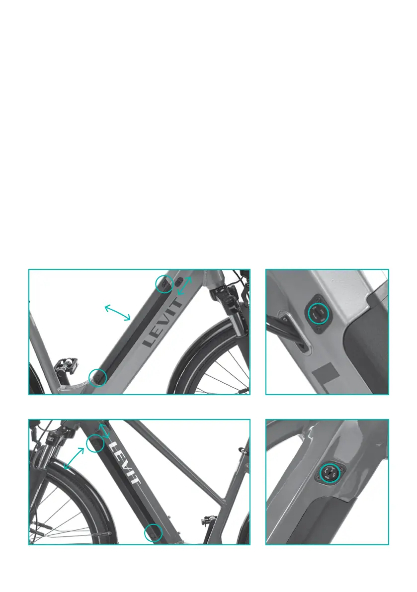handlebars, firmly grab the top end of the baery and release it by pulling gently upwards. Insert