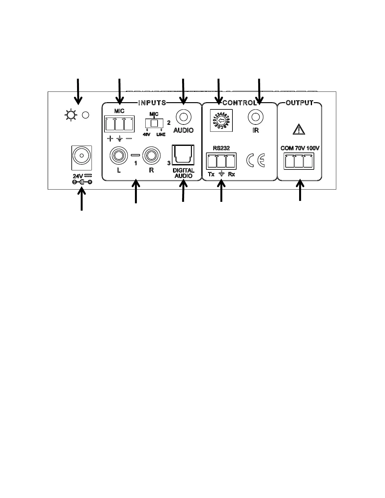 10. AUDIO OUTPUT – (SALIDA DE SONIDO) Conecta con parlantes de 70V o 100V