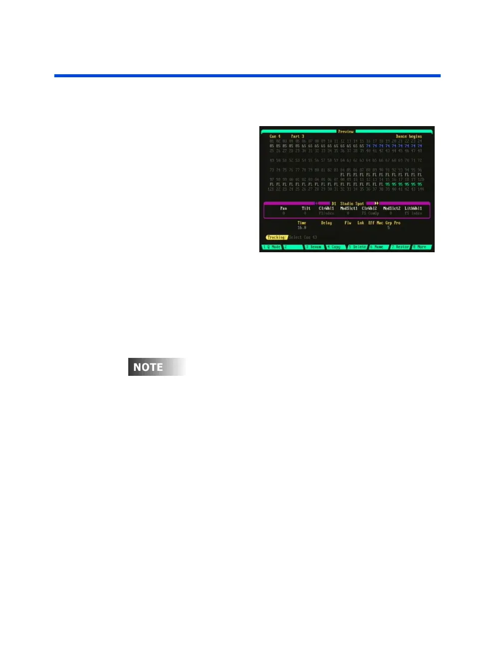 can be seen as light output on the stage. The Cue, Group and Submaster