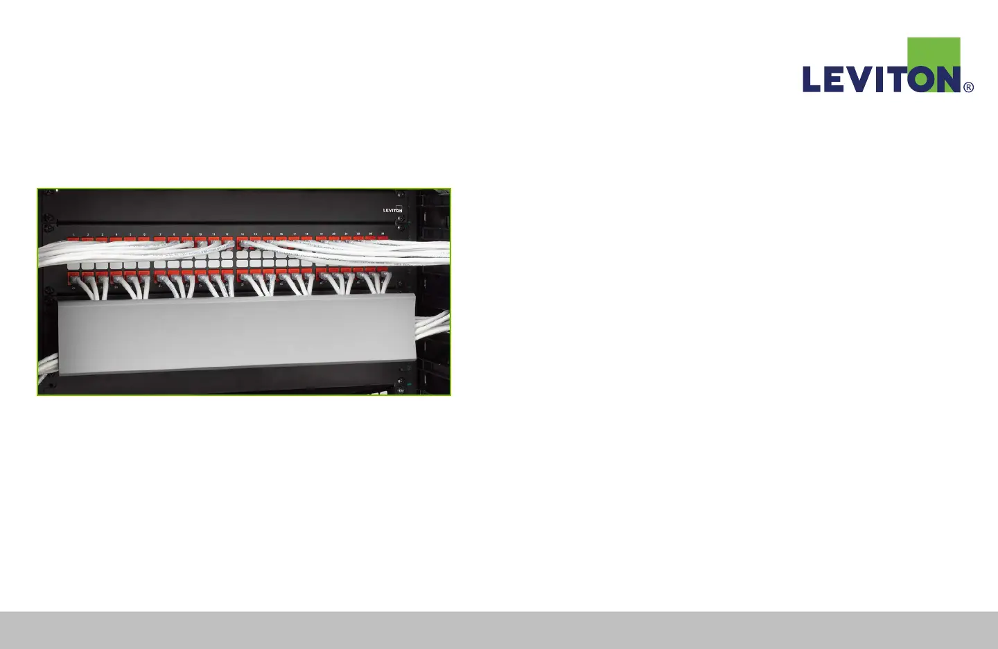Symmetrically dress cords and route into cable management. Leviton’s Cat 6A cords