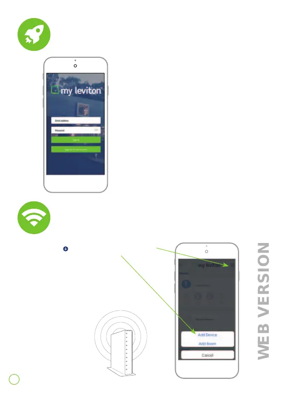 Leviton Decora Smart - App Configuration; Launching and Account Setup; Adding Device to Home Network