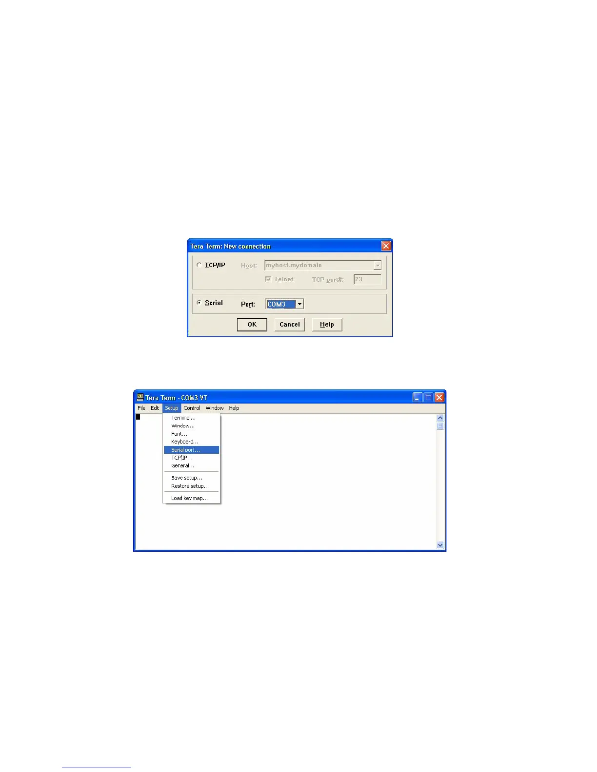 Step 2: To setup the serial port, select the Setup item from the menu bar and
