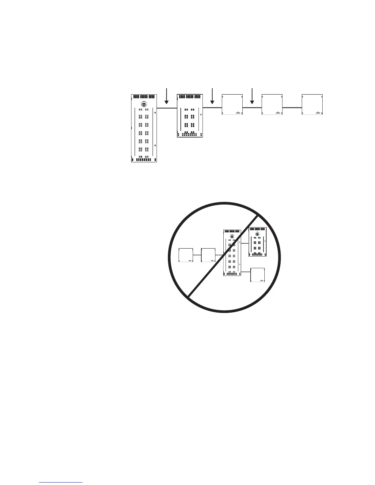 All Master/Remote panels must be connected in a daisy-chained fashion. For example,