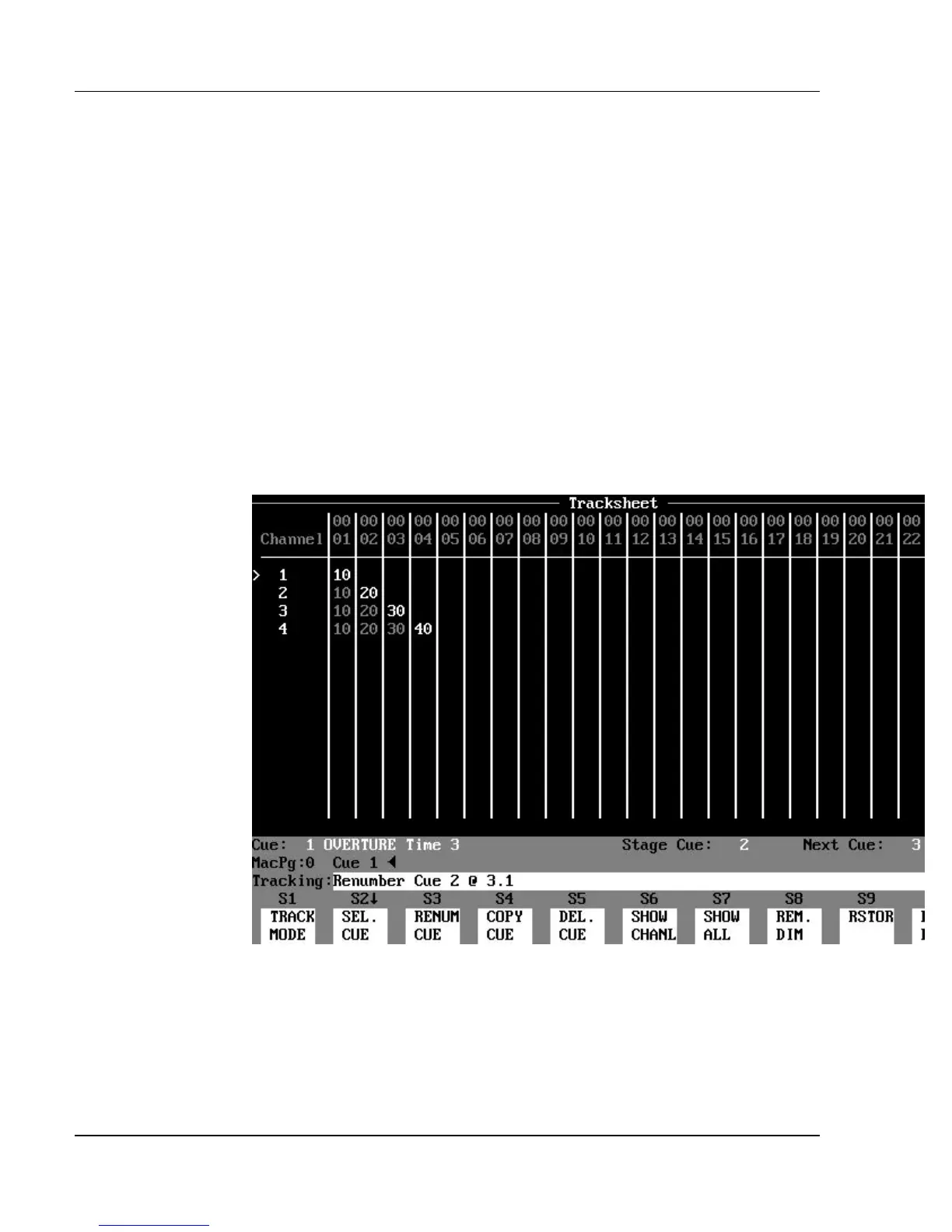Figure 10.5.a, Renumbering Cues in Different Track Modes (before)