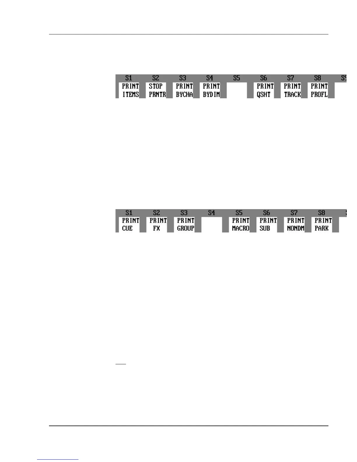 Press the (PRINT ITEMS) soft key to reveal the soft keys that print the