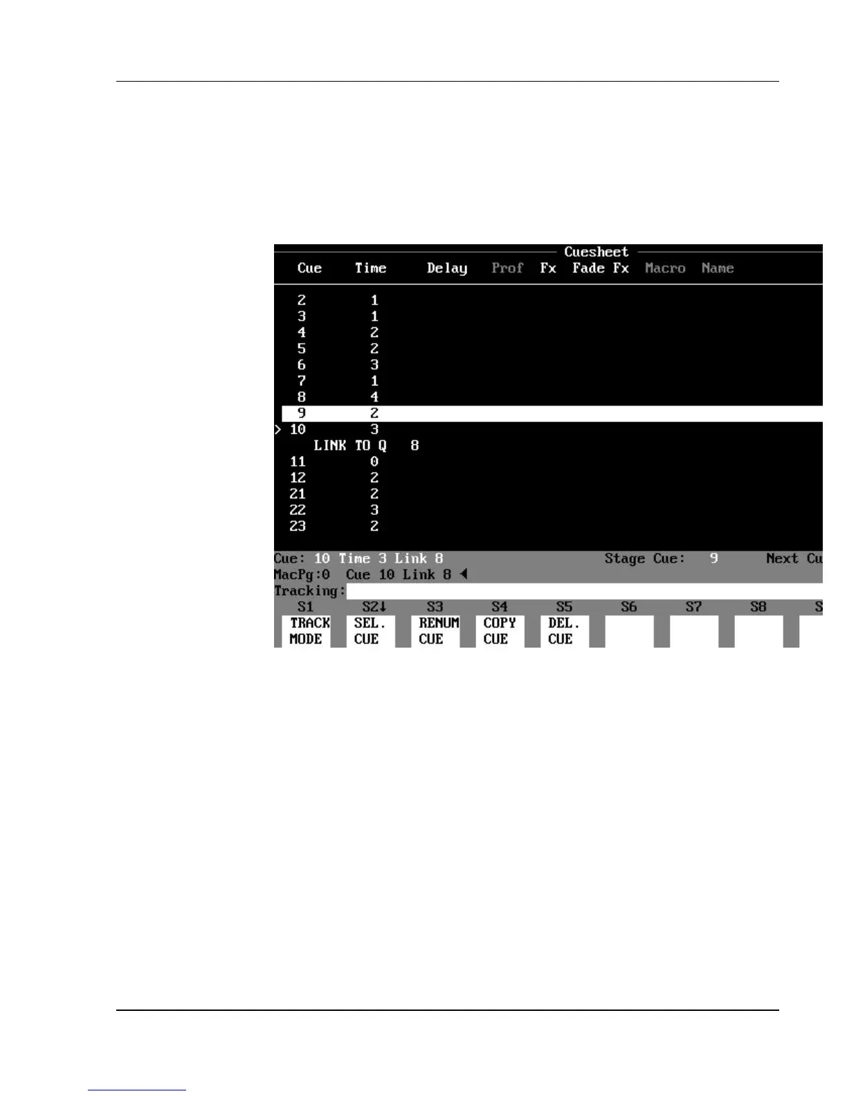[CUE] [10] [LINK] [8] [ENTER] (Creates loop that runs