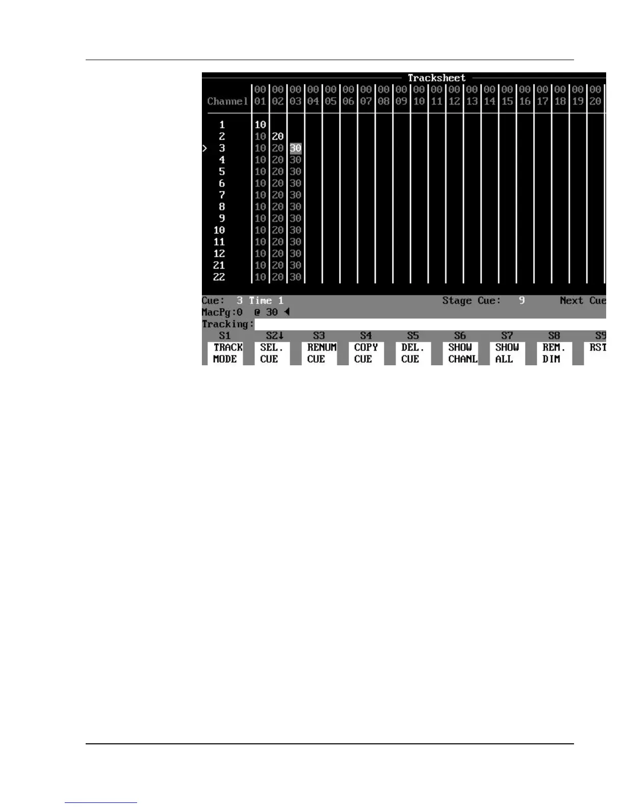3. Take channel 3 in cue 3 to 30%. (Channel 2 tracks at 20%,