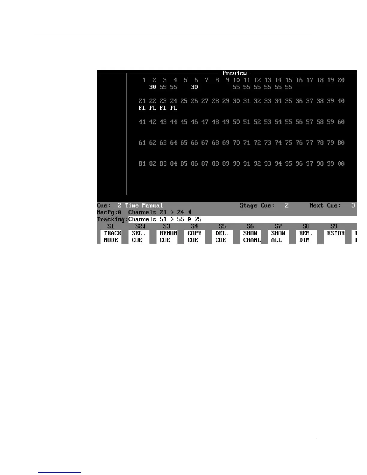 recorded channel levels of a cue. Cues may be created and edited in the