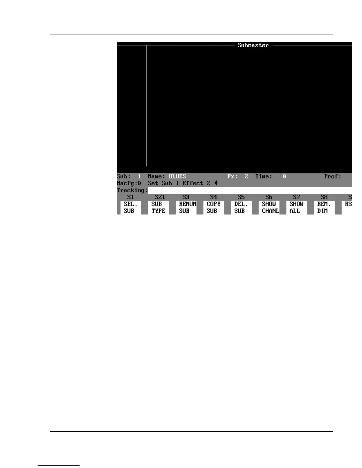 the Effect Submaster display is blank - it shows neither channels nor levels.
