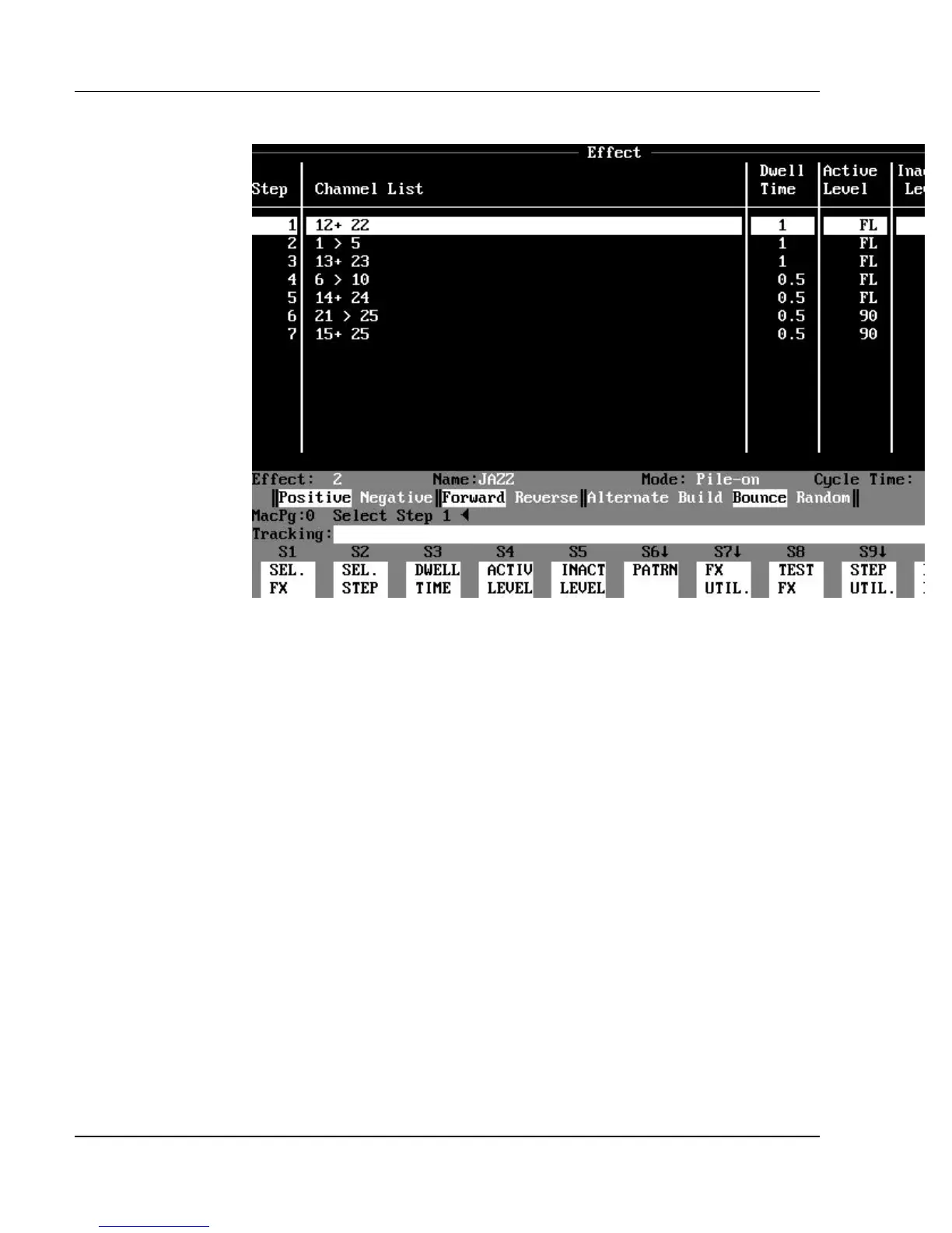 ?? Step shows the step numbers (up to 99) of an effect. When an effect is