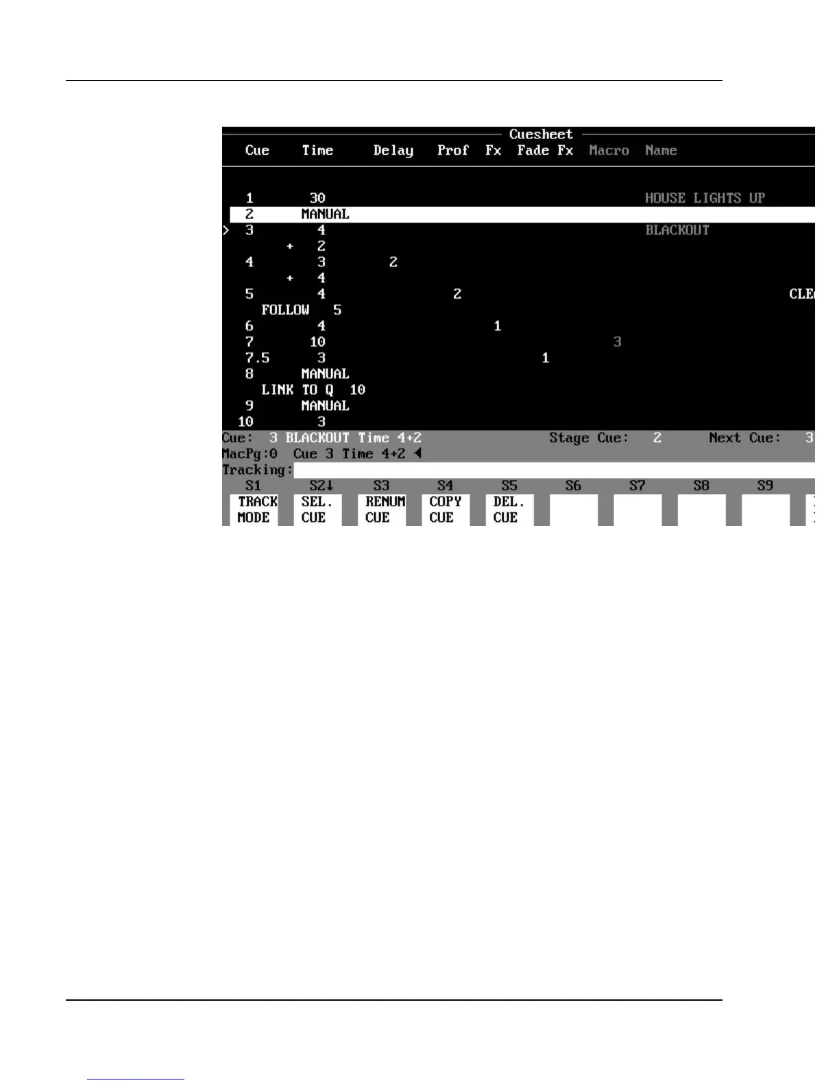 Purpose of the Cuesheet Display: The Cuesheet display is used