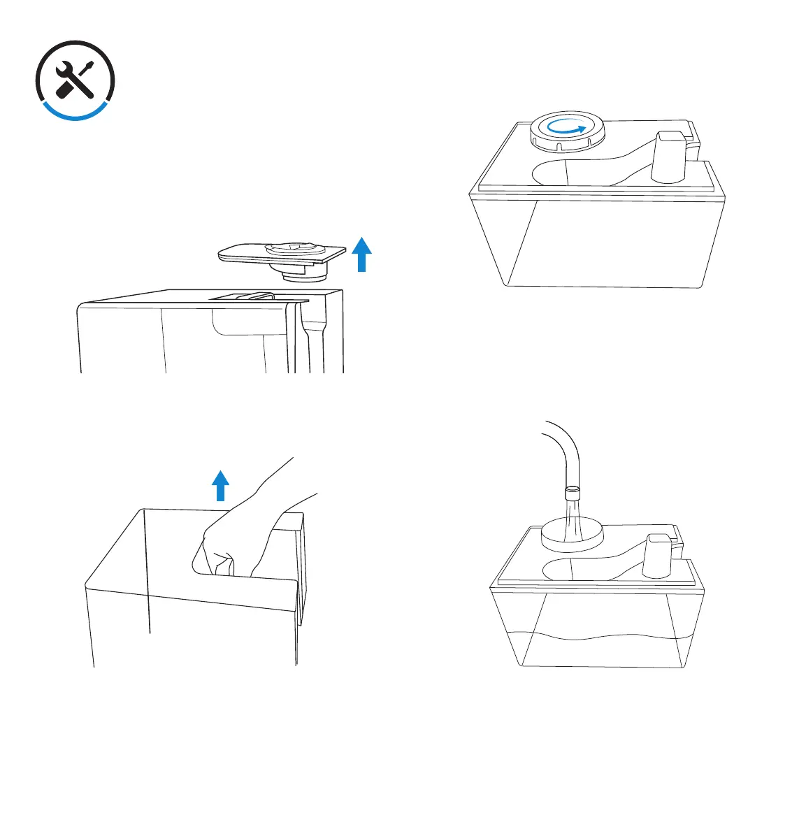 Carefully lift the handle to remove water