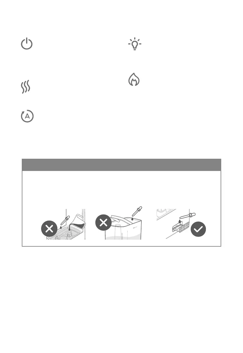 • Non versare oli essenziali, liquidi per il trattamento dell’acqua o filtri nel serbatoio o nella