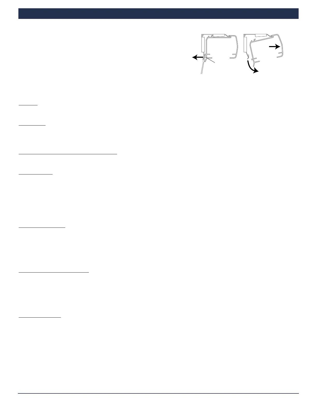 While holding the headrail, push back on the bottom tab of the