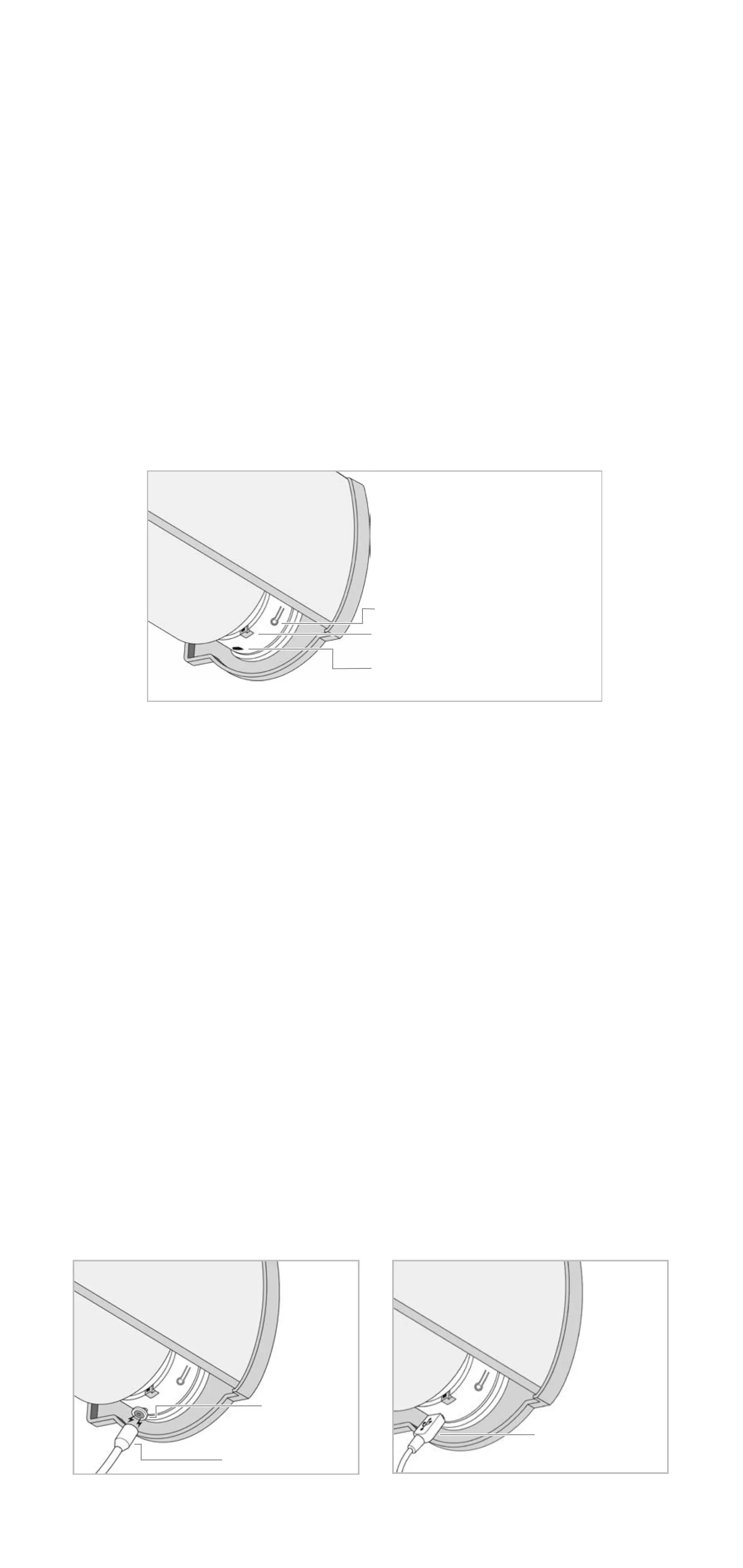 El botón de programación, el puerto de carga y la luz