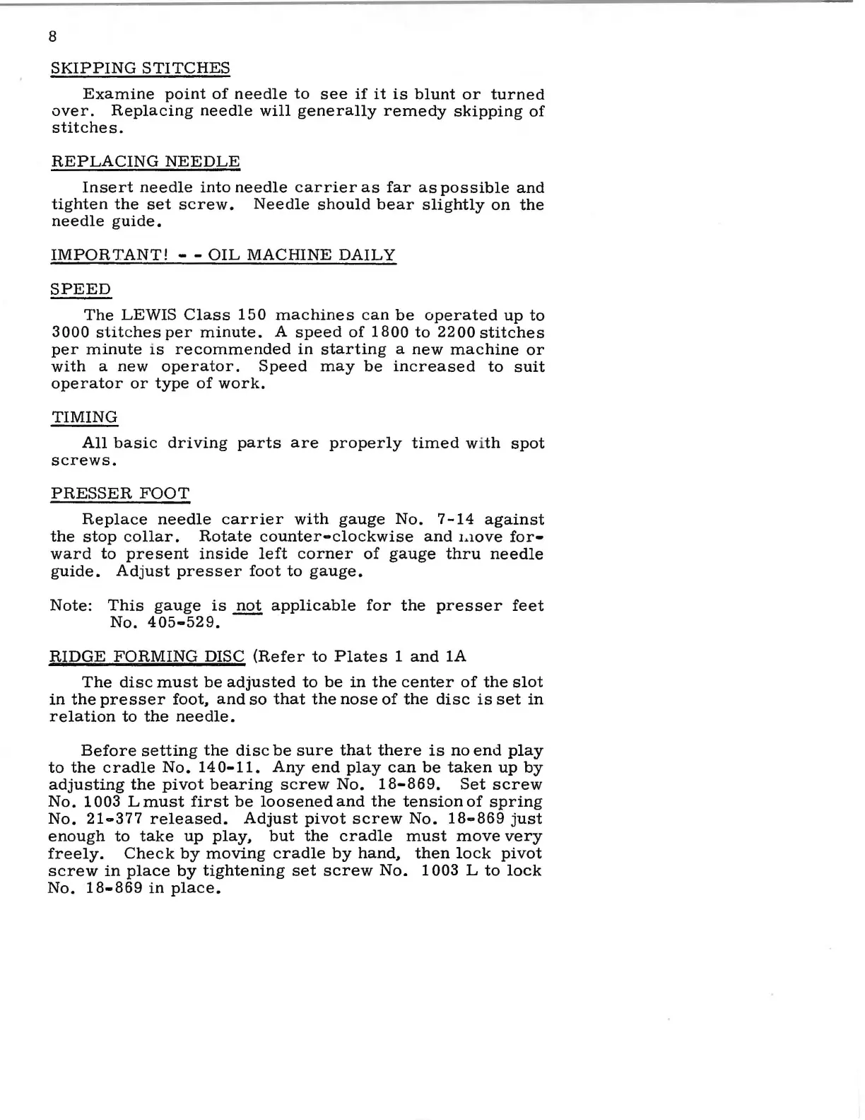 Lewis 150-3 - Detailed Ridge Forming Disc Adjustment