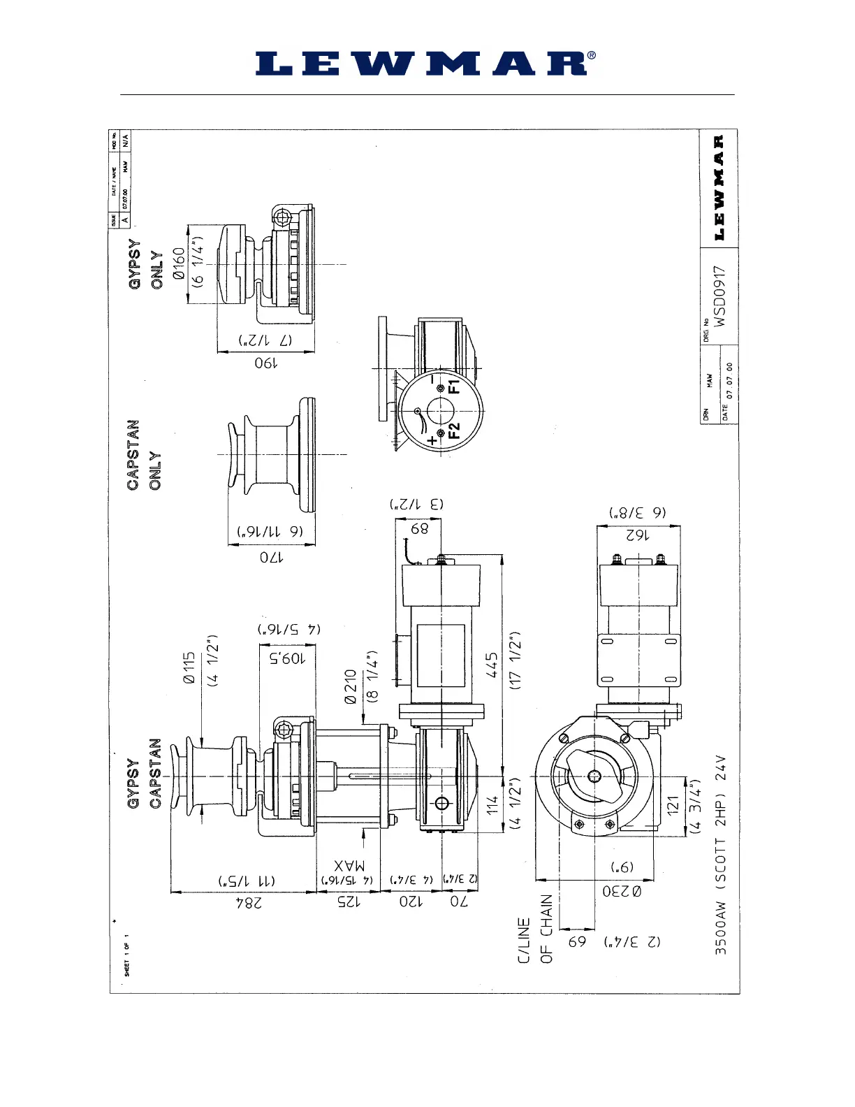 Lewmar 3500 - Electric Dimension Drawing