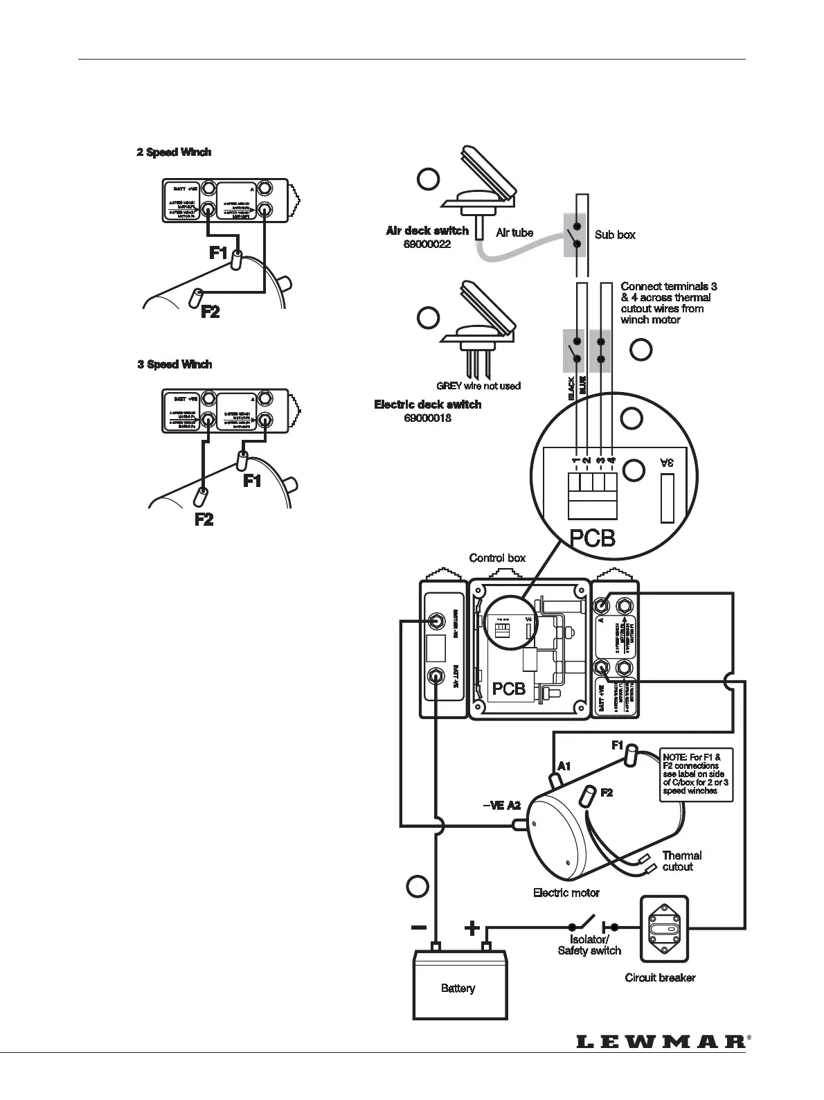 Lewmar 44 - Wiring Diagram 2 & 3 Speed 64 to 111 - 12 V & 24 V