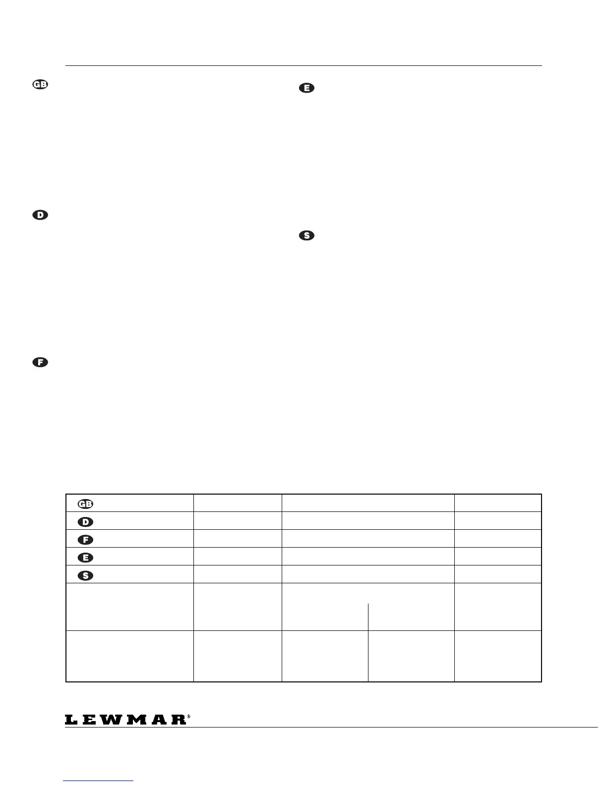 Lewmar rekommenderar följande dimensioner för kabel, anslutning av