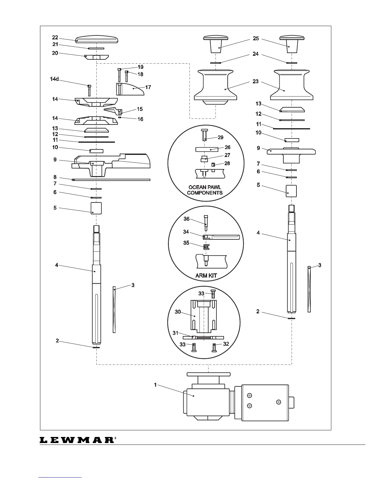 Lewmar Ocean 3 - Concept;Ocean;Capstan 2 & 3 Parts Listing; Concept;Ocean;Capstan 2 & 3 Teile Liste; Concept;Océan;Capstan 2 & 3 Nomenclature des Plèces; Concept;Ocean;Capstan 2 & 3 Komponent Förteckning