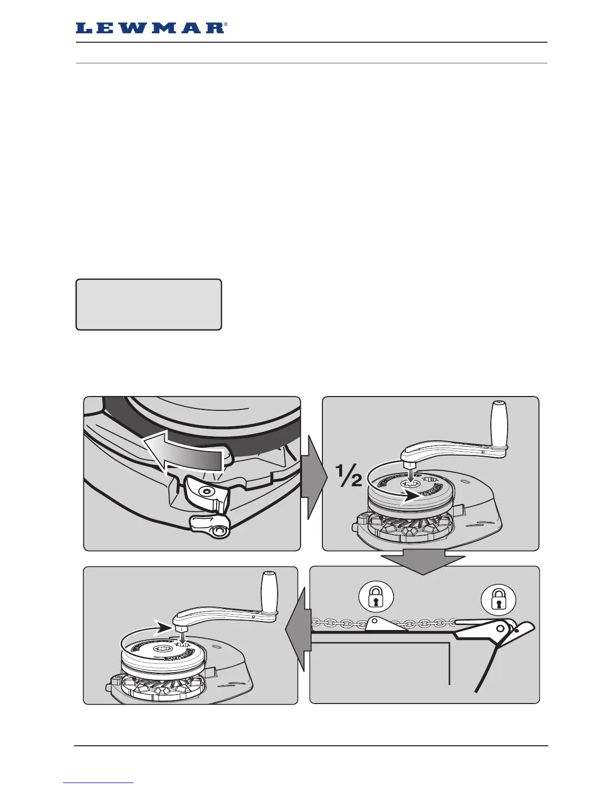 2. Place a Lewmar winch handle into gypsy drive cap/drum top nut and rotate anti-clockwise by half a turn.