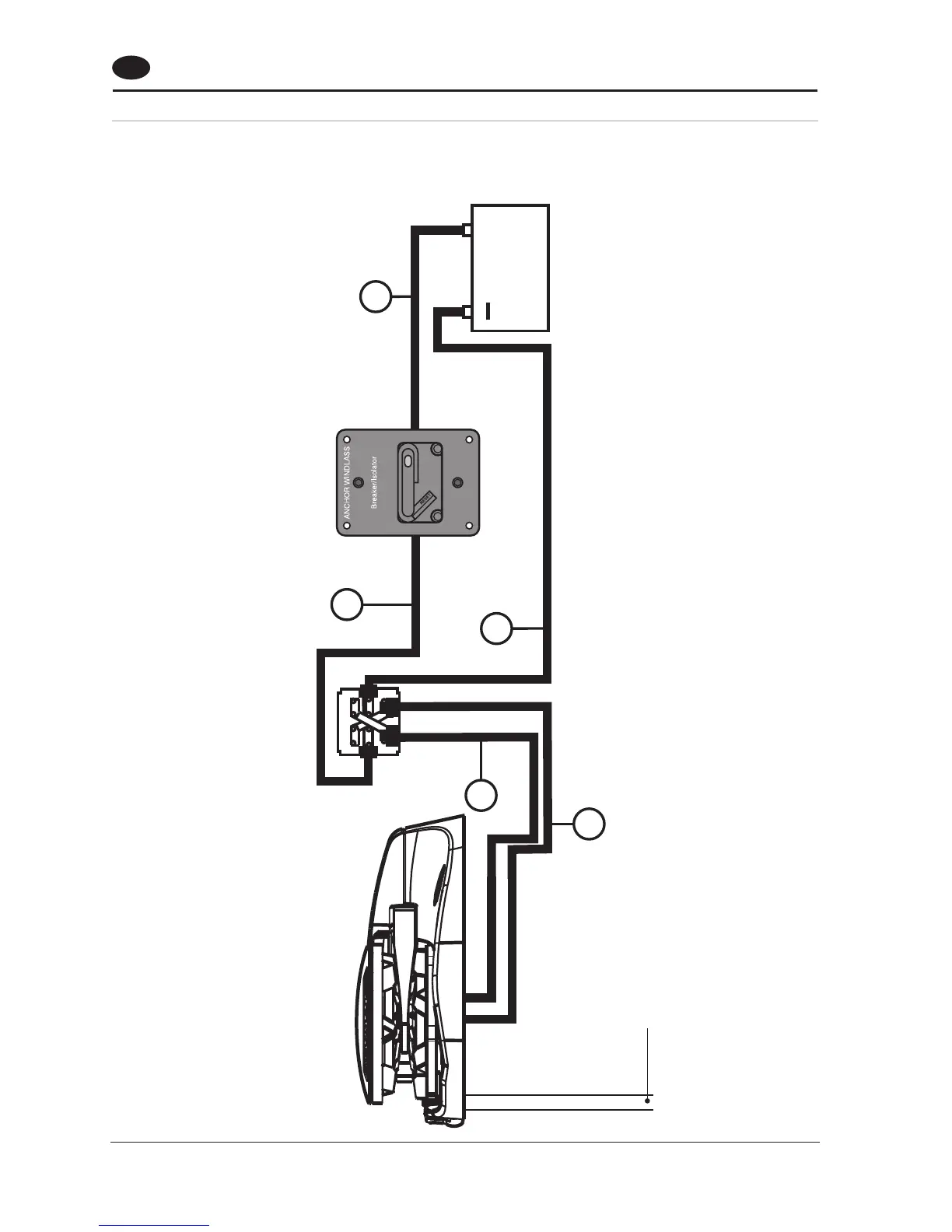 Battery to windlass, windlass to battery.