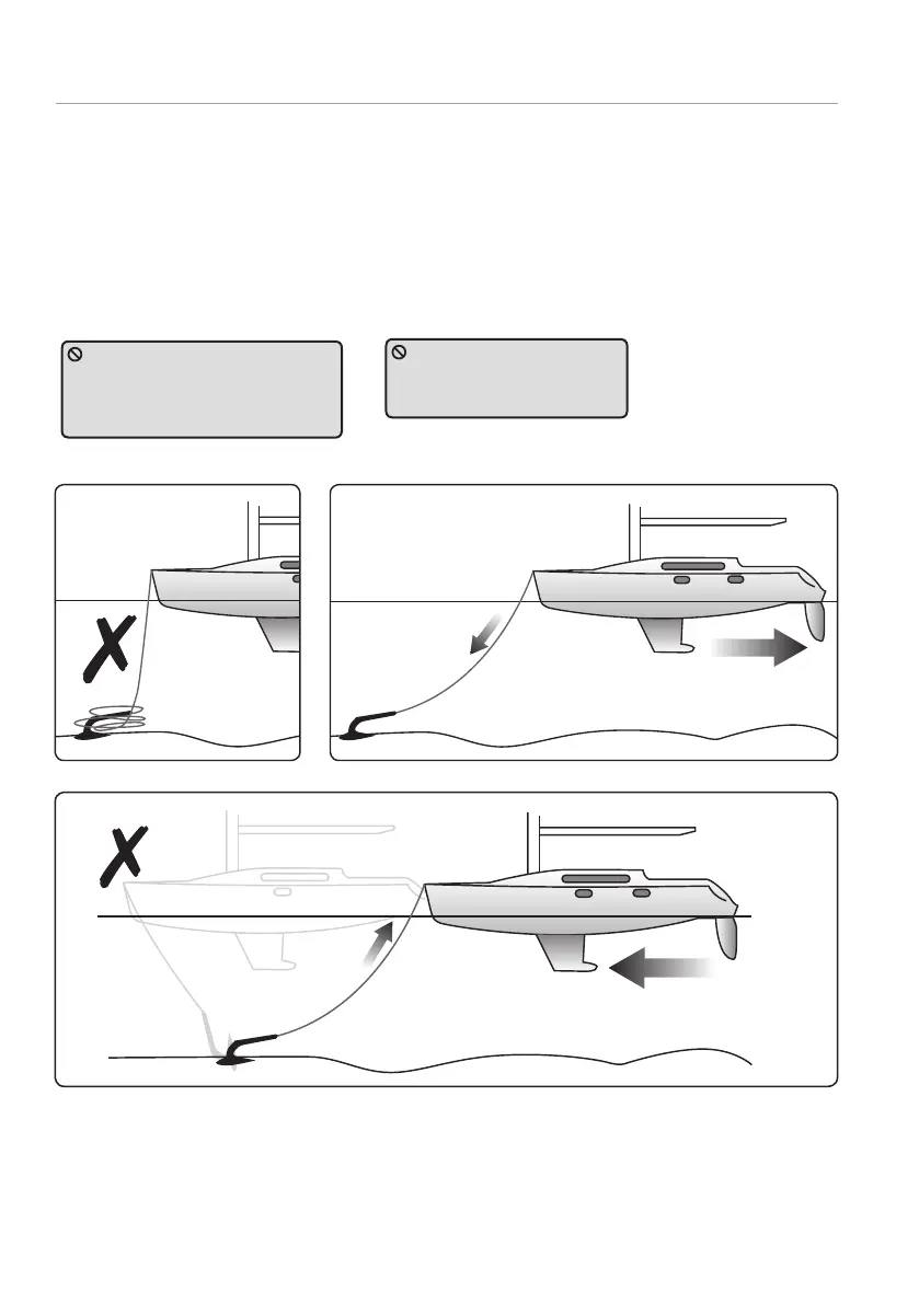 1. When anchoring, power rode out allowing the vessel to take up stern away preventing the rode tangling with