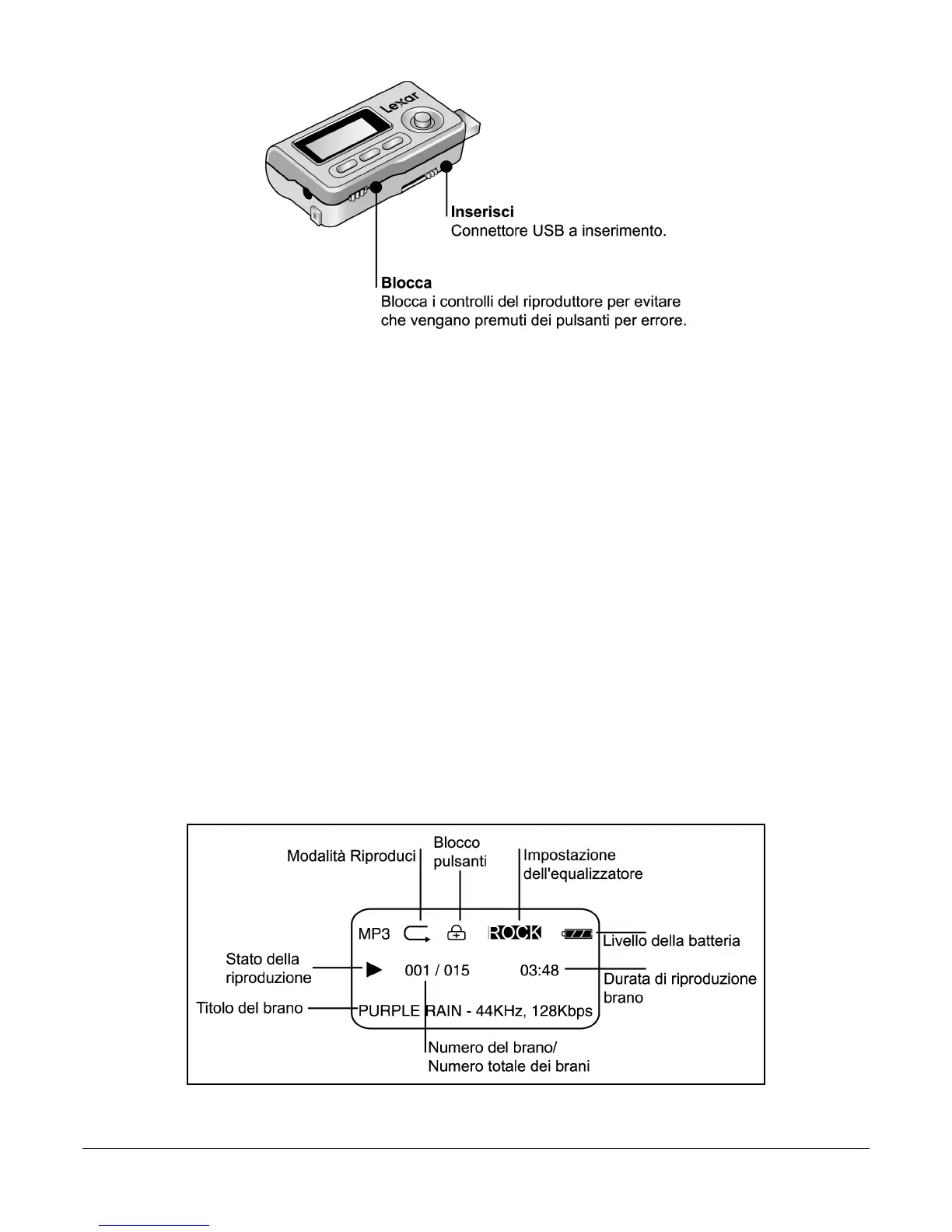 Il display offre tutte le informazioni necessarie per un utilizzo corretto del lettore.