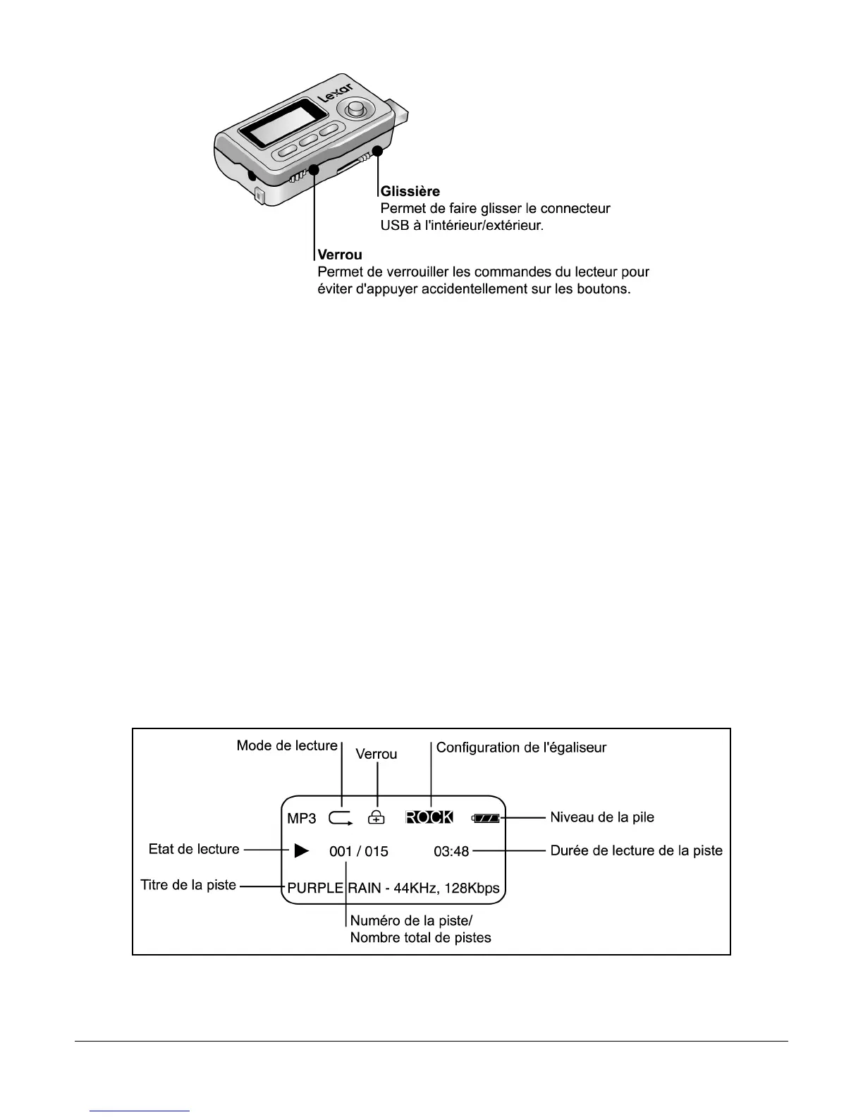 L’écran du lecteur vous donne toutes les informations nécessaires pour un fonctionnement et une navigation fac-