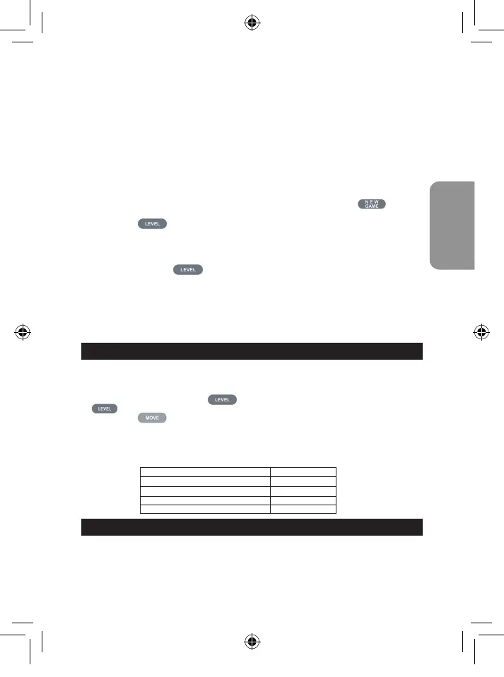 2.Escolha o nível 15 premindo o botão , de seguida as casas B7, D7, F7 ou H7 e o botão