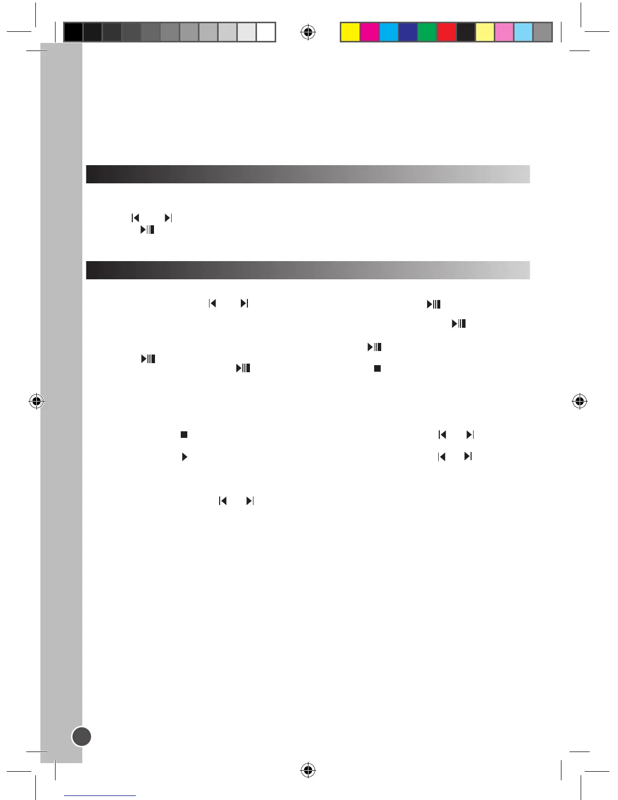 In “Play” mode, press and hold or to fast forward or backward the track currently playing. This