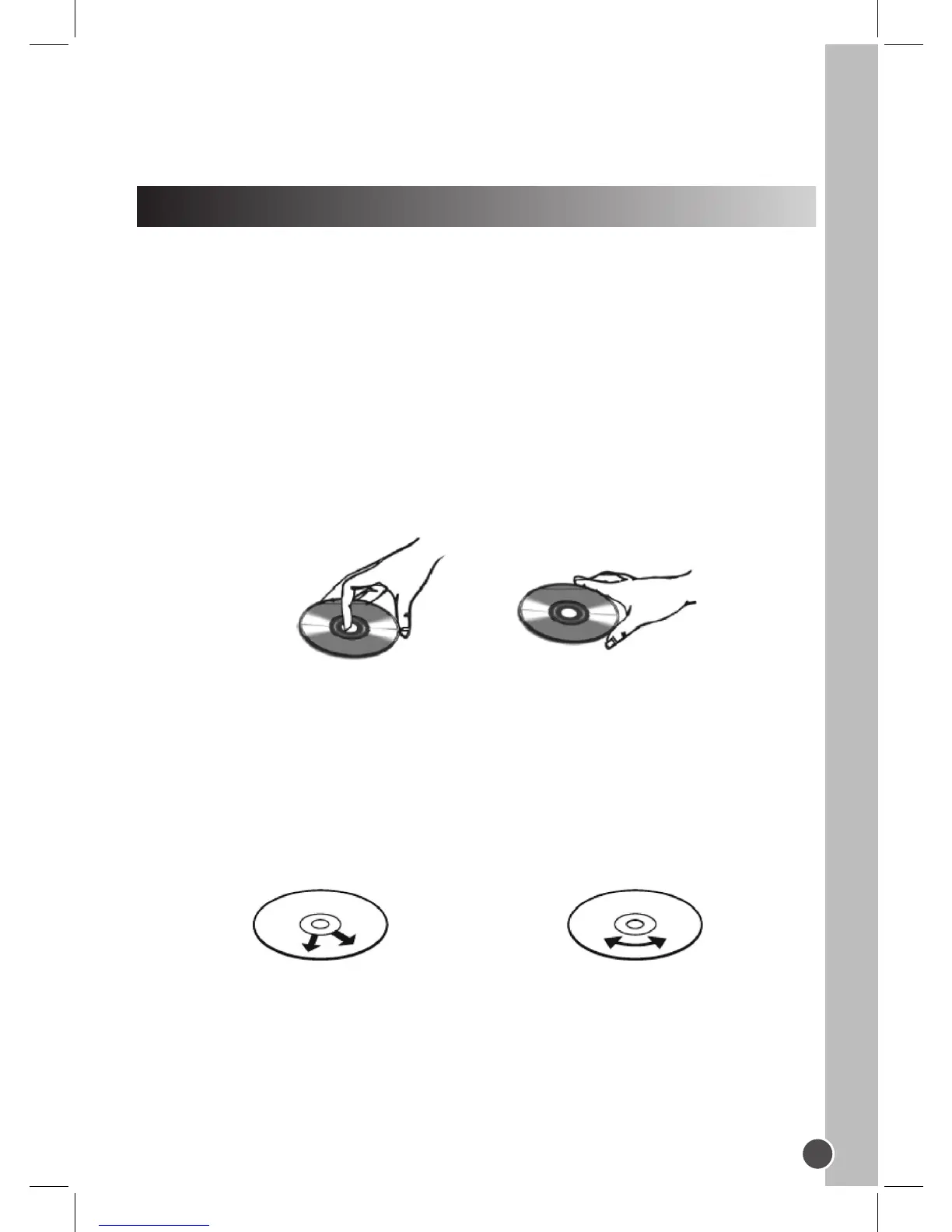 • Beim Reinigen einer Disc immer geradlinig von der Mitte der Disc bis zur Außenkante