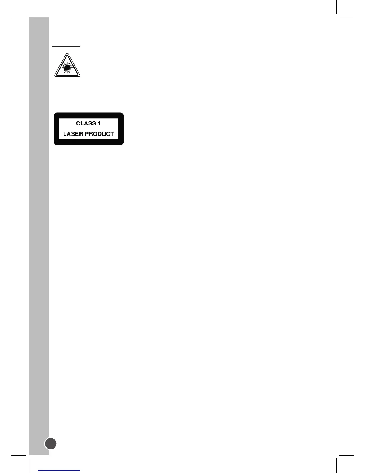 DIT IS EEN KLASSE-1 LASERPRODUCT. ONJUIST GEBRUIK VAN DE KNOPPEN,