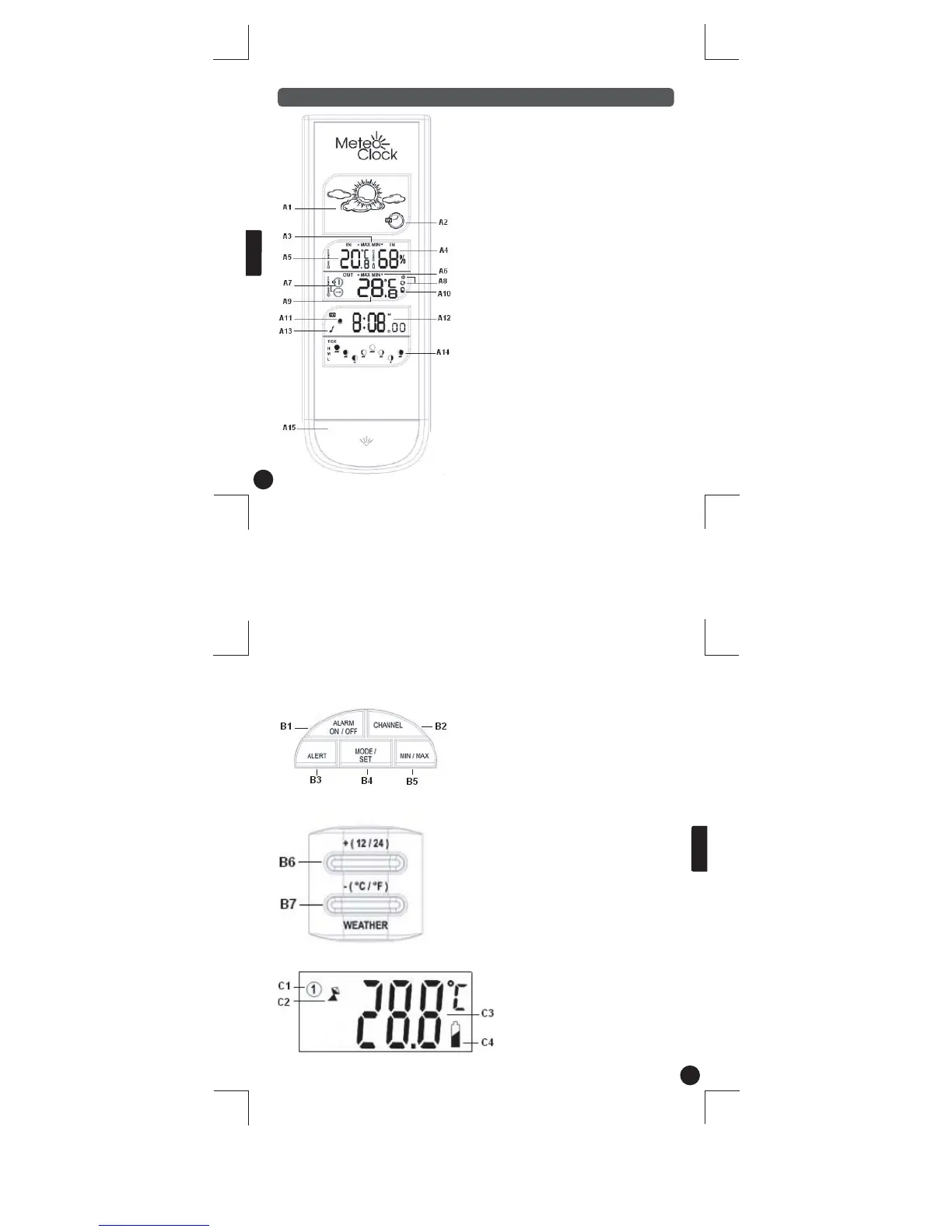 B7 – botão - (oC/oF)/Weather: ajuste o despertador e o