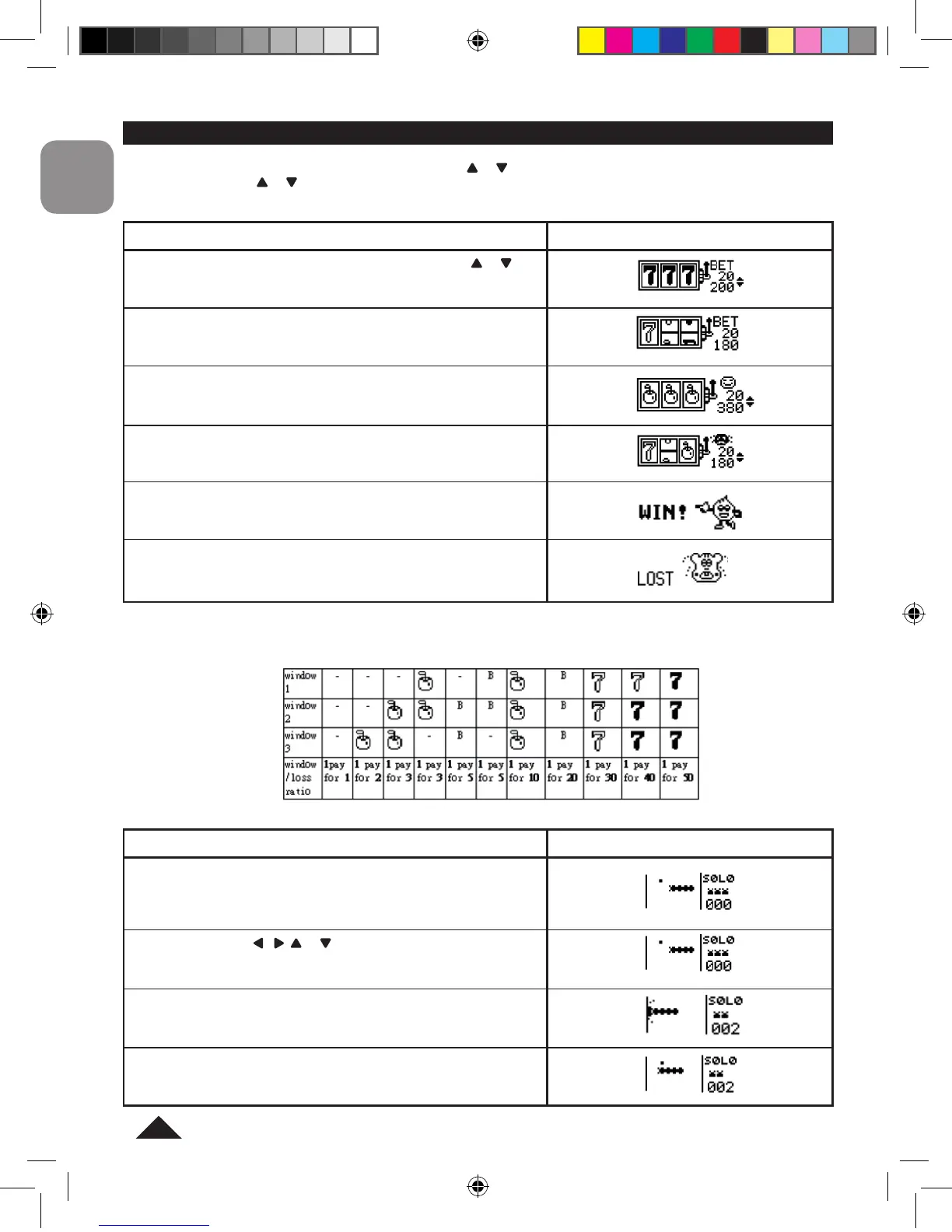 « 20 » est la mise (BET) par défaut, utilisez les touches et