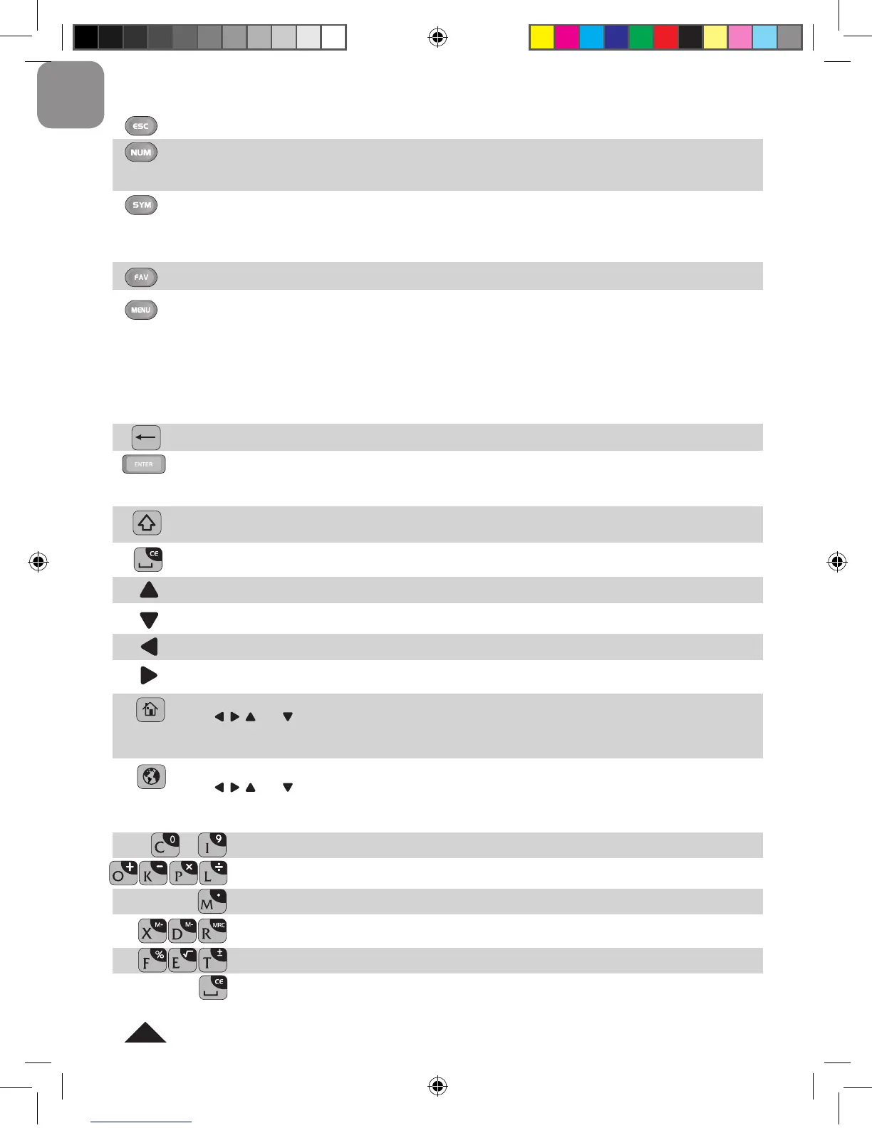 • To enter special characters in “Dictionary” mode and when using the “Organiser” functions (“Calendar”,