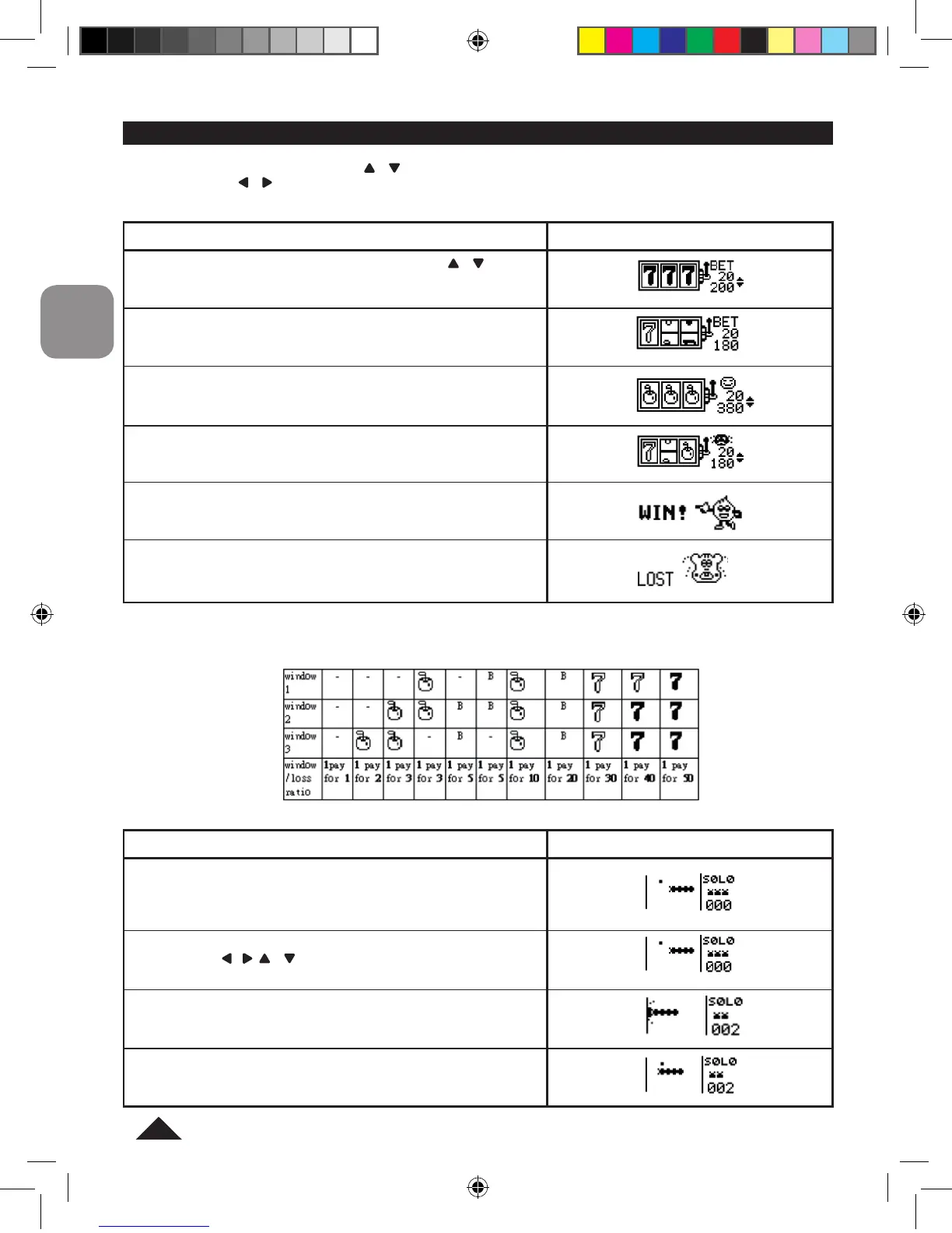 • Combinaciones y su correspondiente pago: