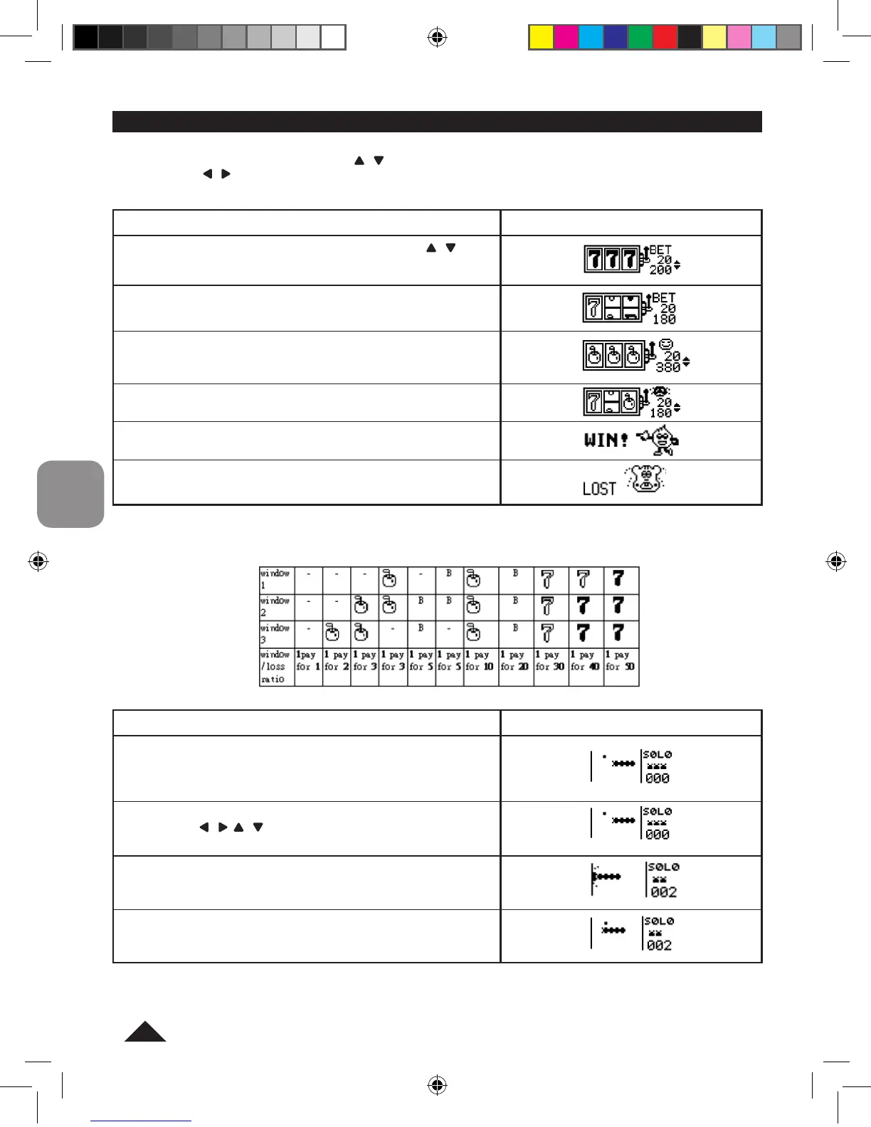 „20” jest domyślnym zakładem (BET), naciśnij klawisze i , aby