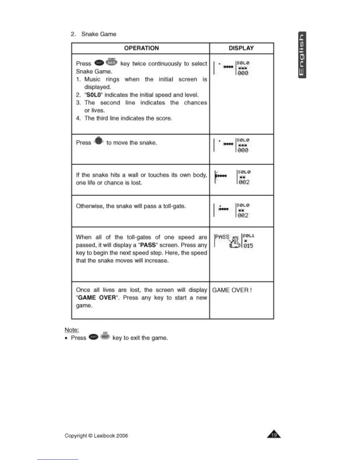 LEXIBOOK NTL800 - 2. Snake Game; 3. Hangman Game