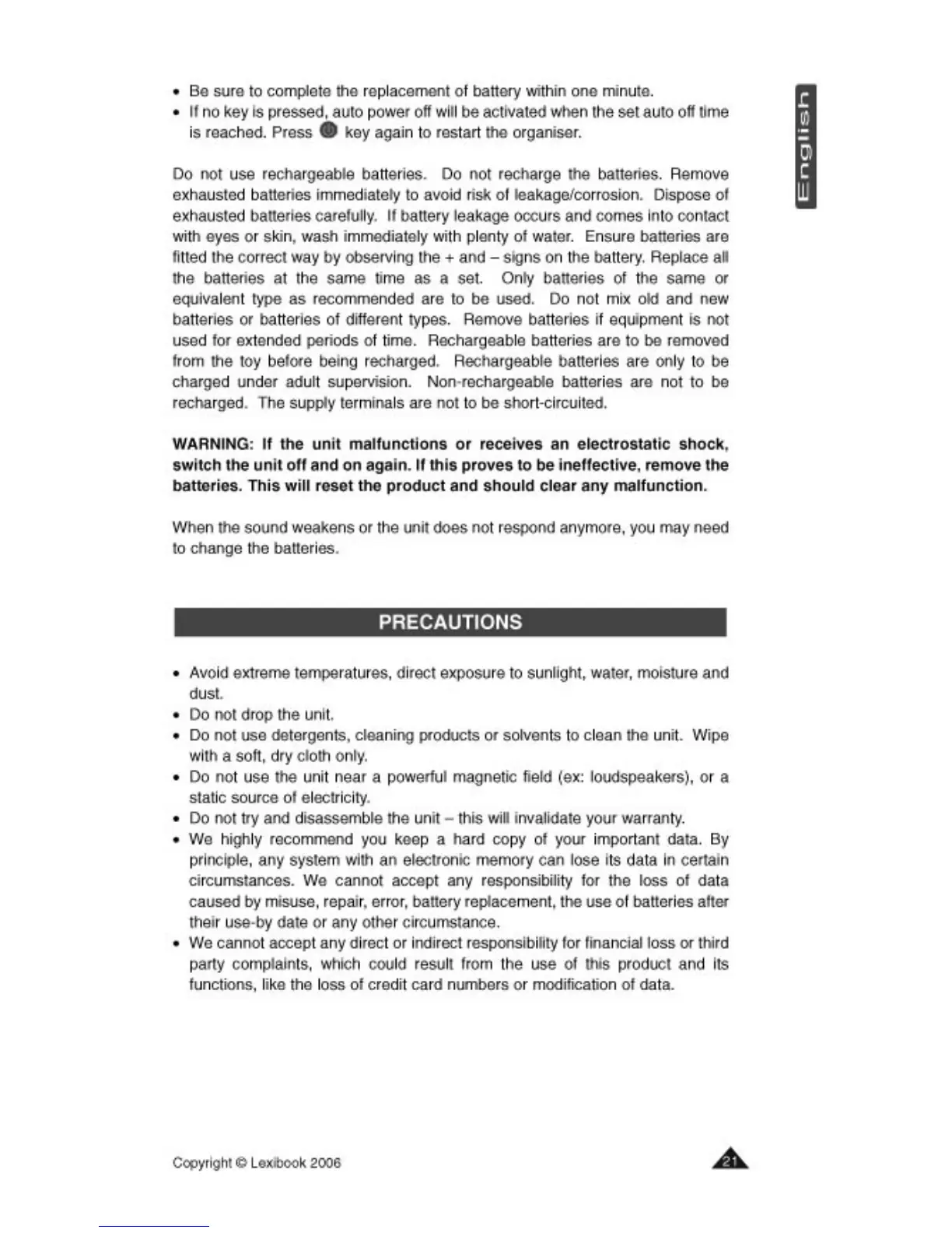 LEXIBOOK NTL800 - Precautions